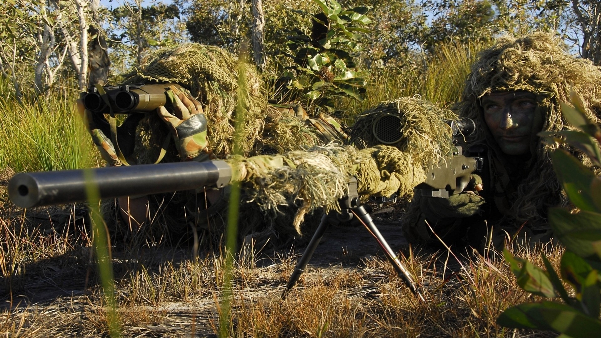 Maskierte Scharfschützen im Hinterhalt mit Waffen