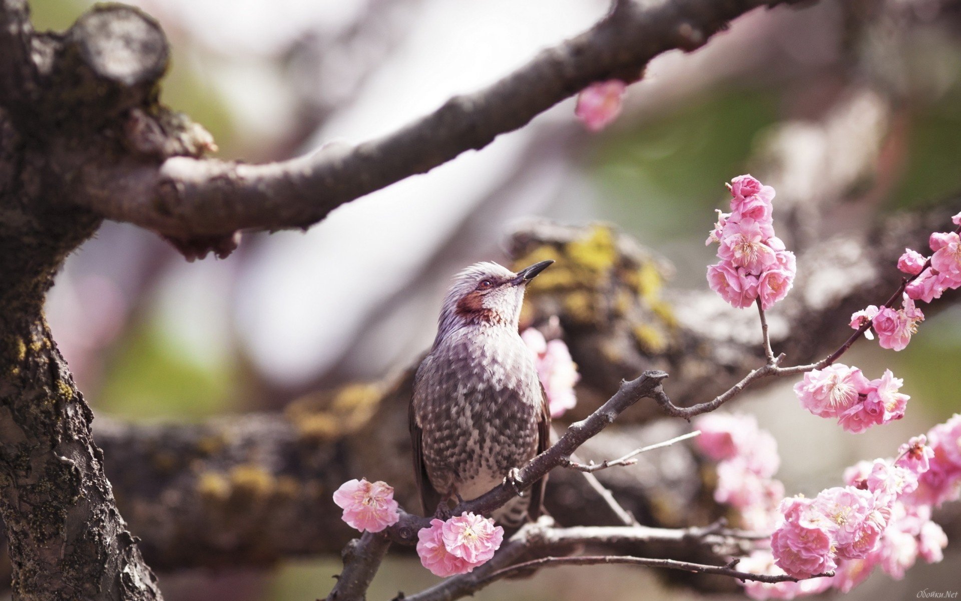 Grauer Vogel mit rosa Wangen auf einem Ast