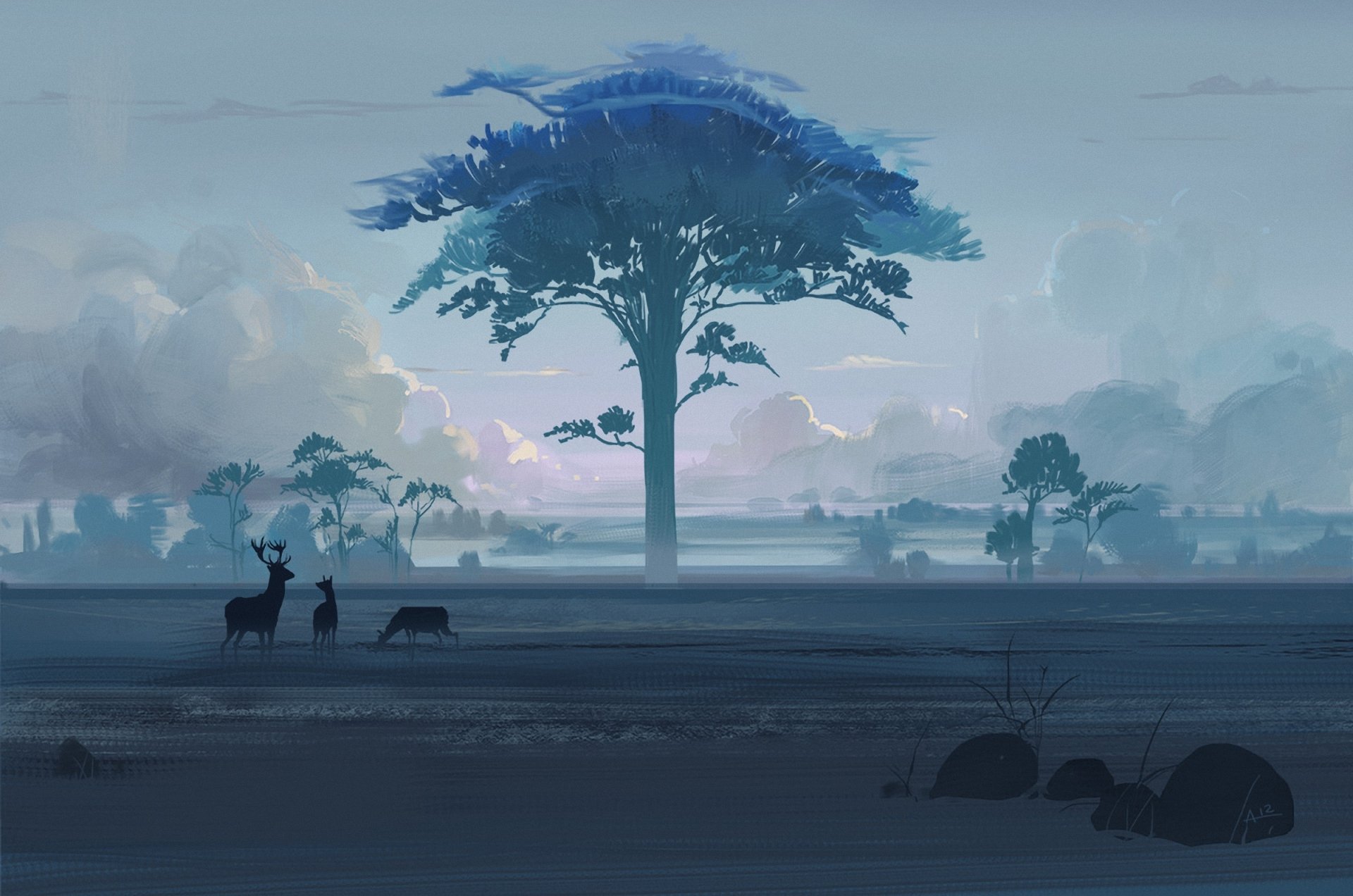 Ein gehörnter Hirsch liegt auf dem Boden, umgeben von saftigem Gras