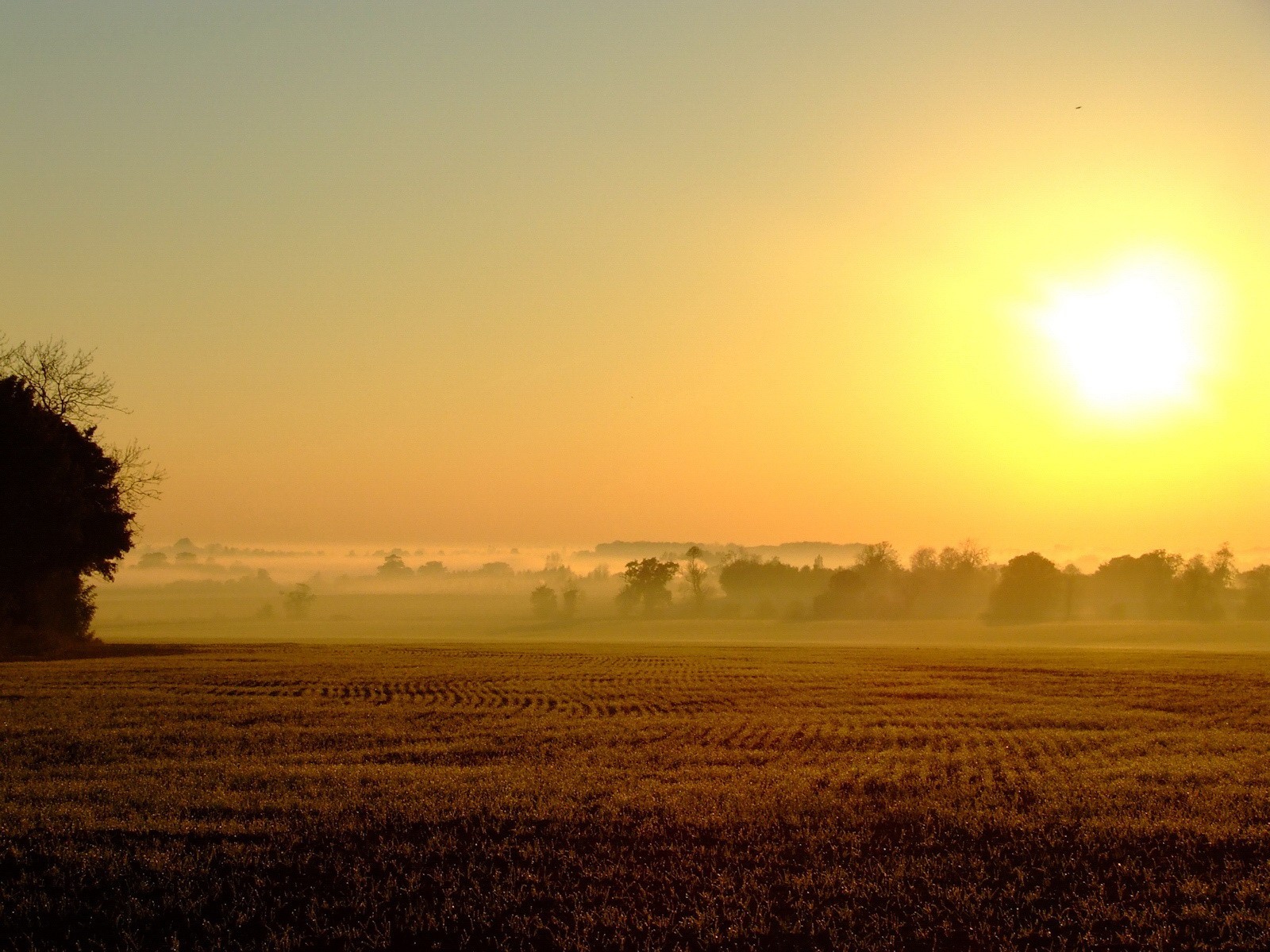 Von der Sonne im Morgengrauen hervorgehobenes Feld