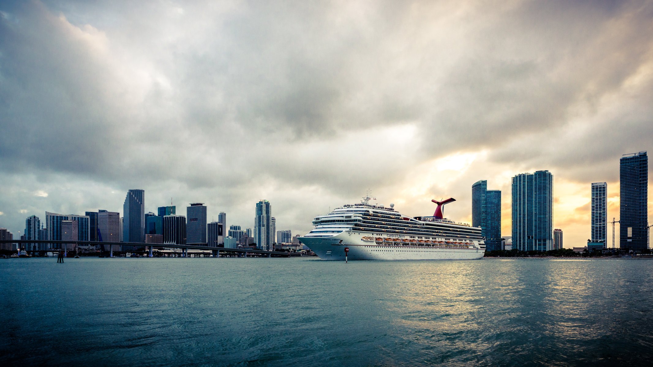 Kreuzfahrtschiff vor dem Hintergrund der Wolkenkratzer