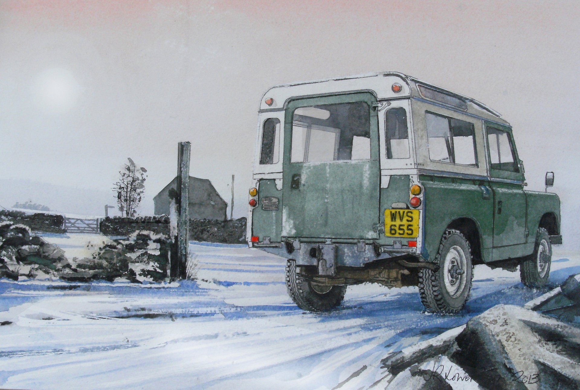 Land Rover auf dem Hintergrund der hügeligen Herbstlandschaft