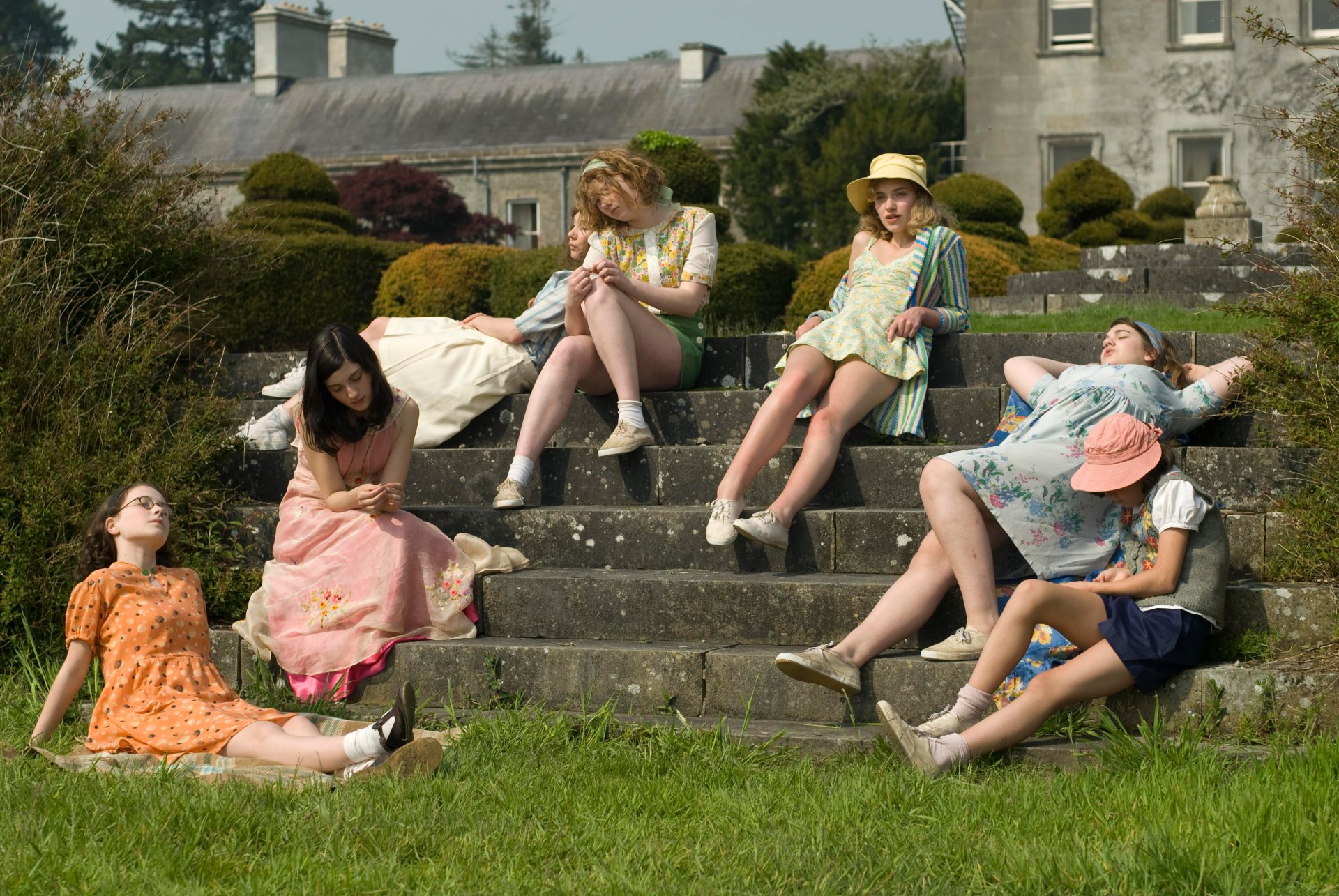 Porträt eines Mädchens, das aus dem Fenster schaut