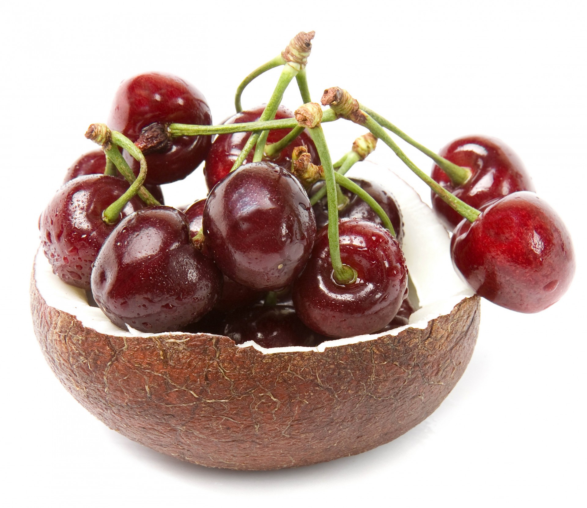 Pfirsiche in einer Schüssel mit Kirschen und Brombeeren