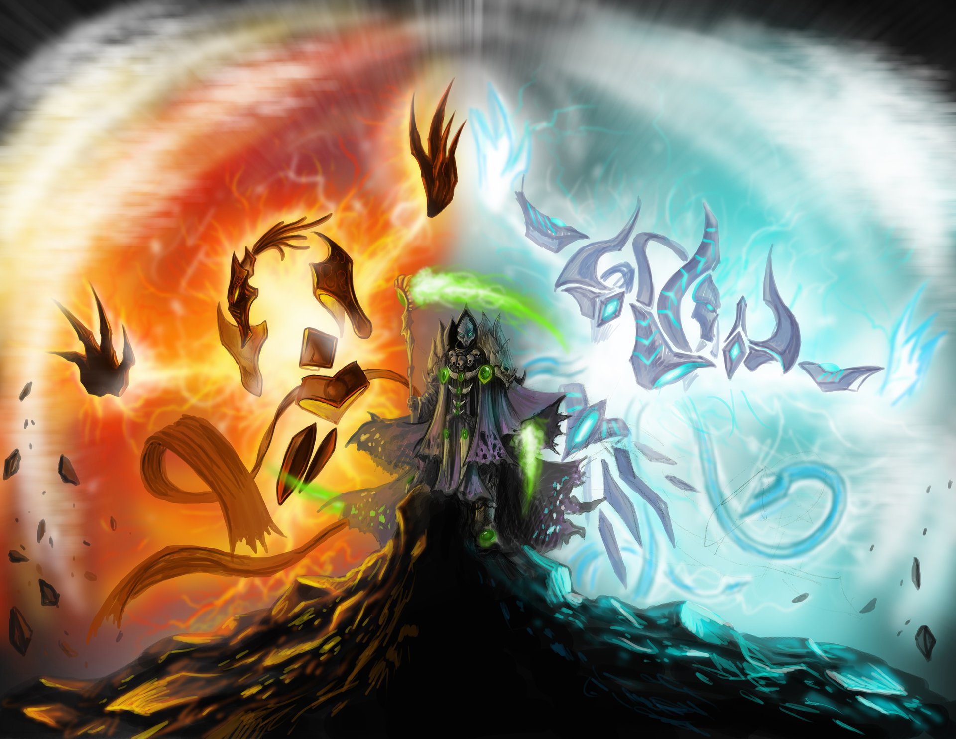 Eine fantastische Zeichnung des Todes. feuer und Kälte