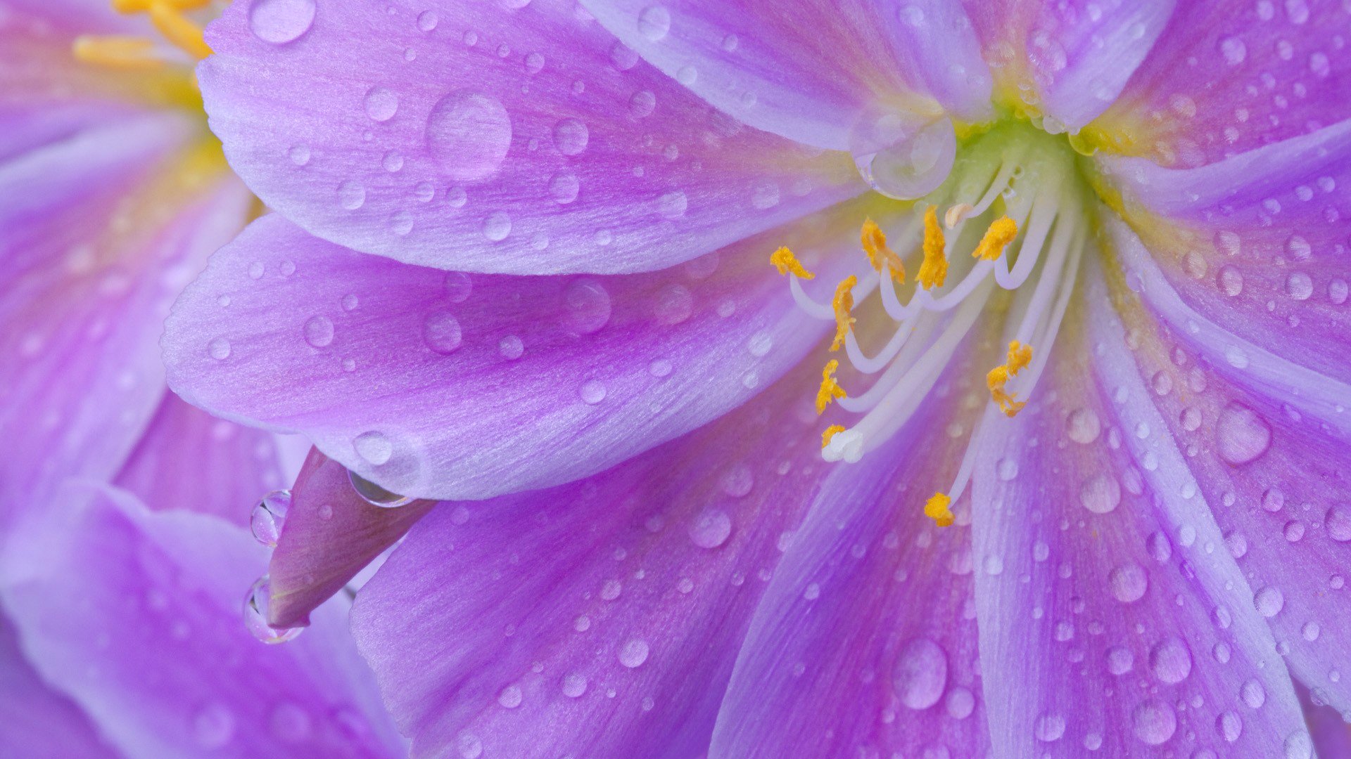 Tropfen auf einer Blume in lila