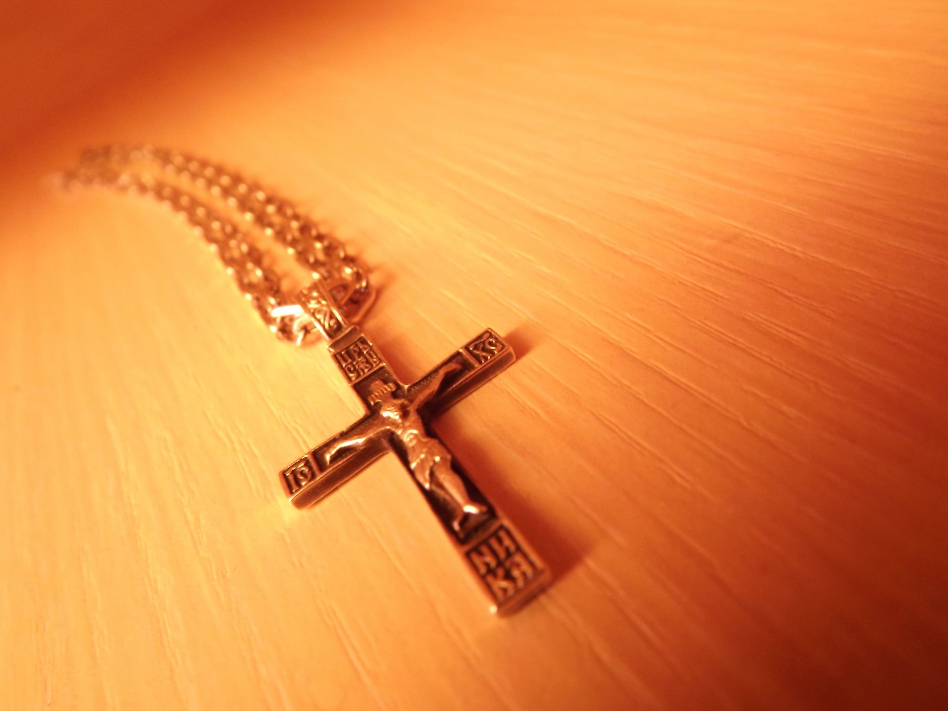Hänger Kreuz an einer Kette unter Makro