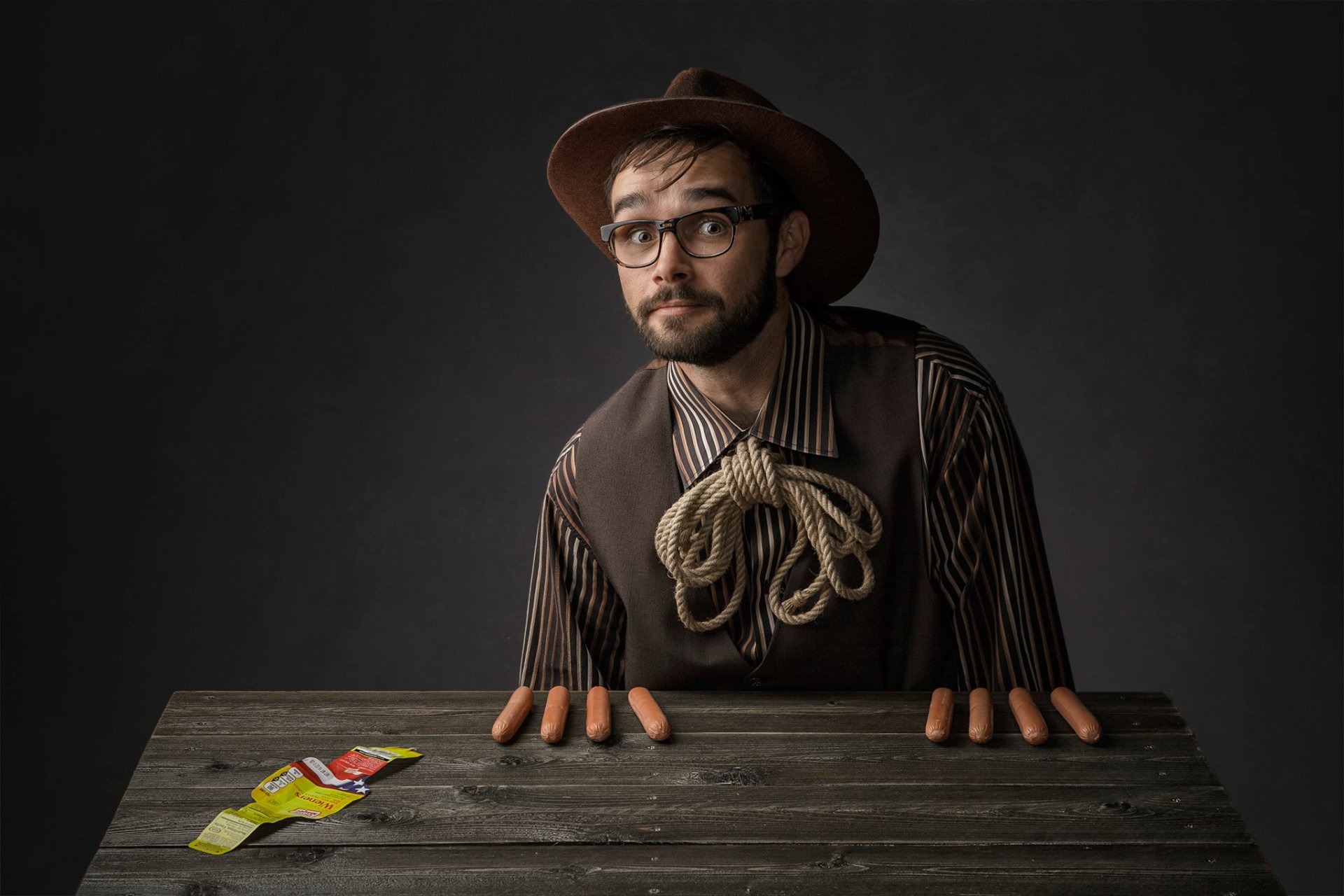 Komödiantisches Fotoshooting mit Würstchen