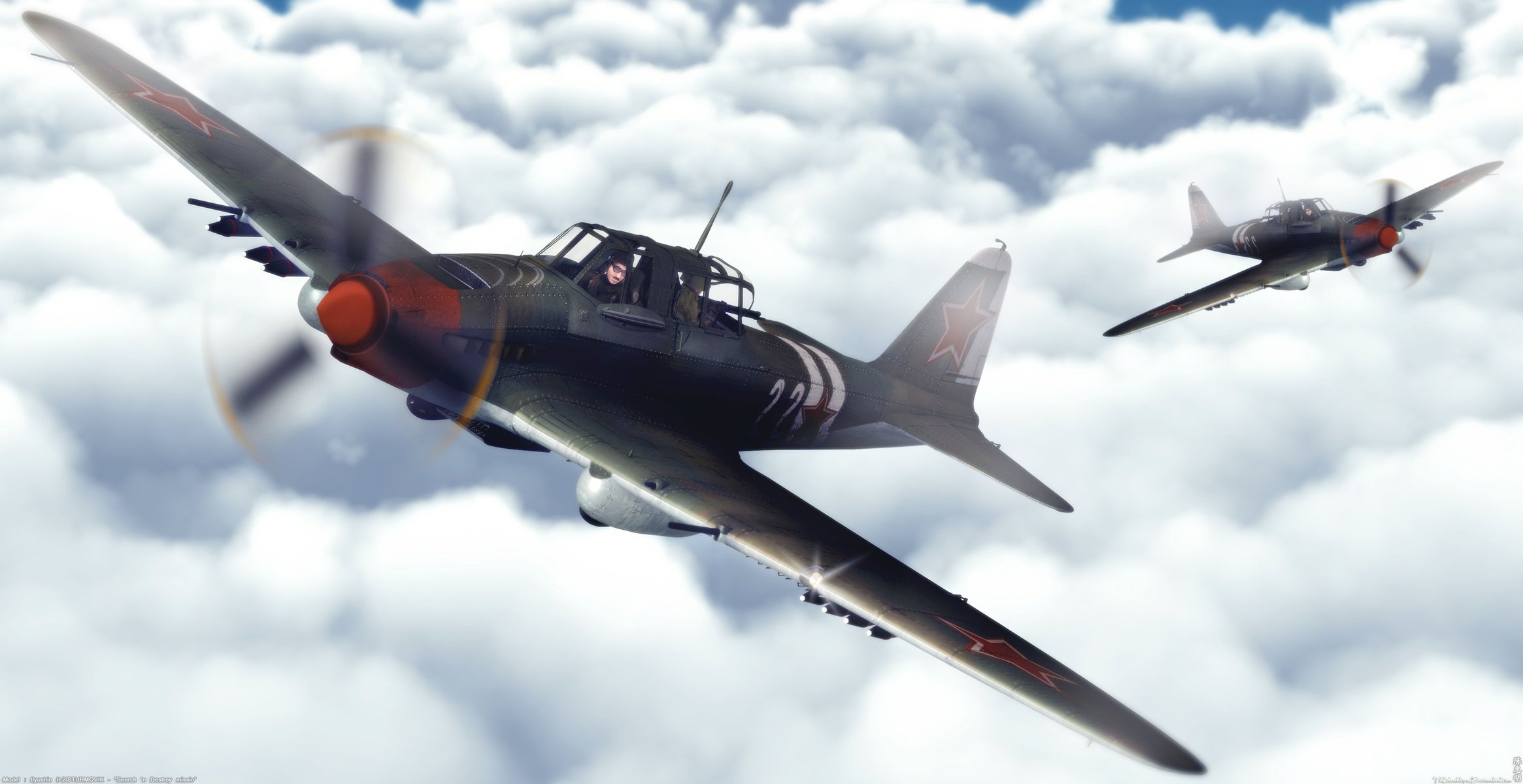 Der Flug von zwei Militärflugzeugen über das grün geprägte Gelände
