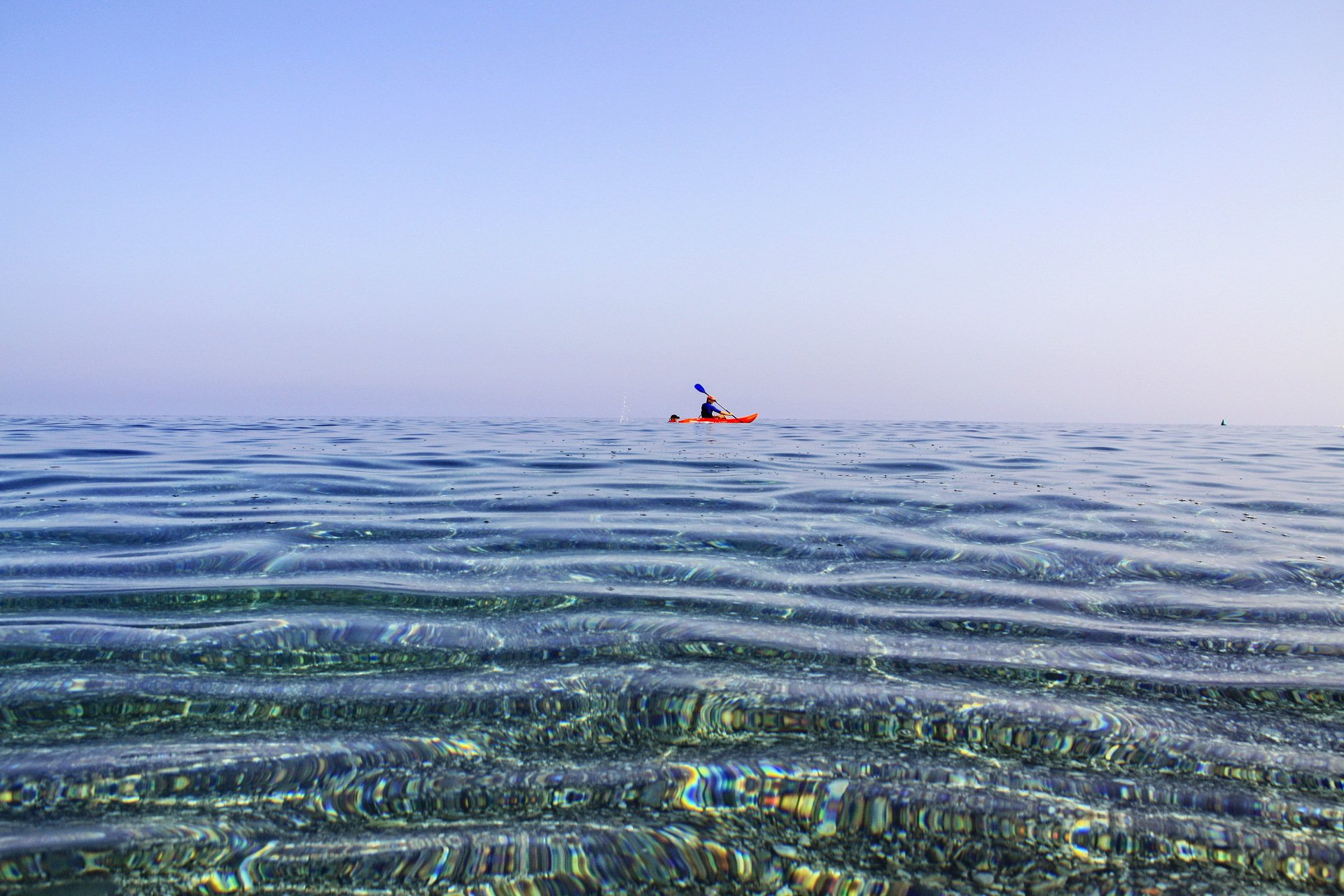 Zwei Hunde beobachten den Sonnenuntergang am Meer