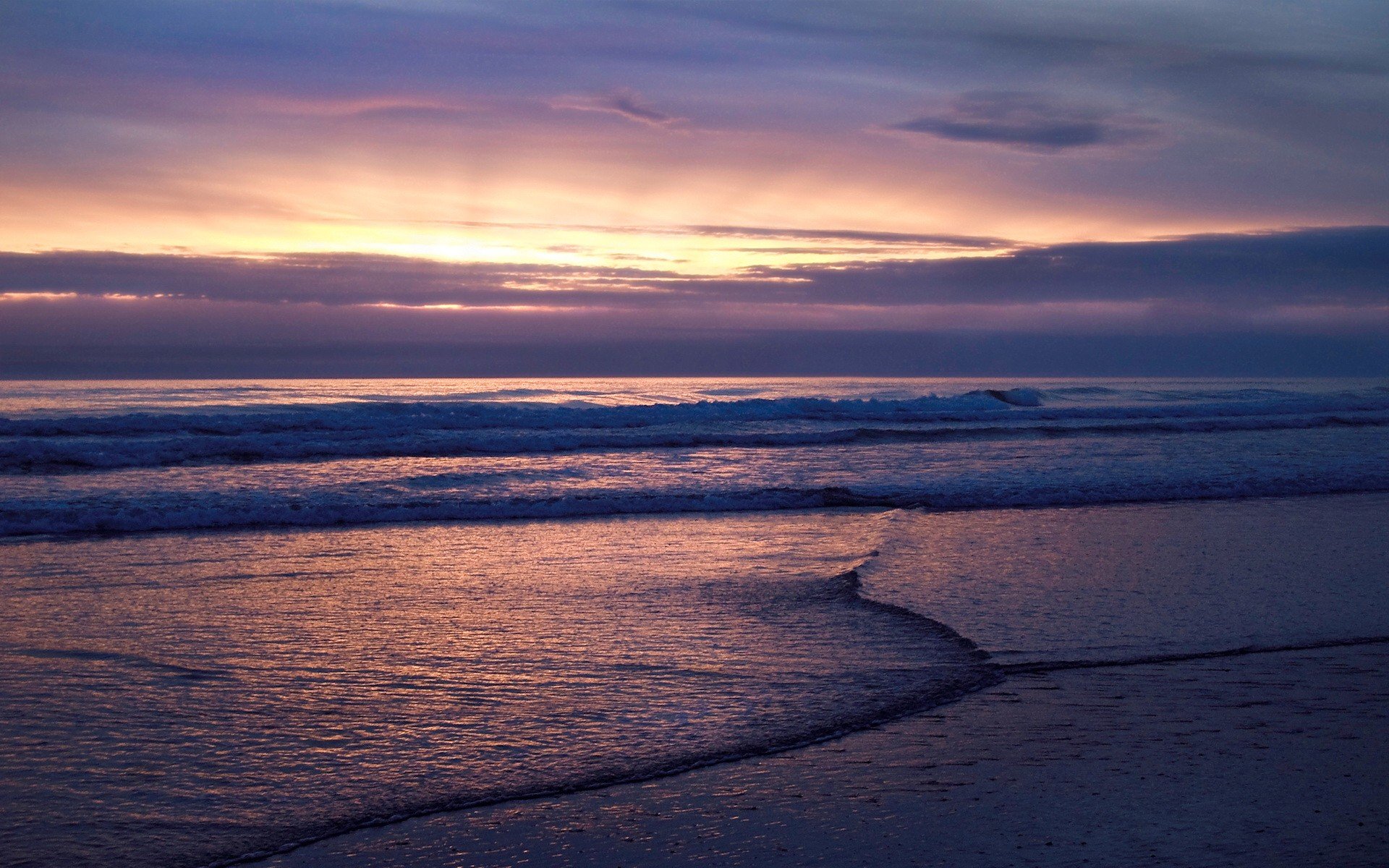 Meereswellen vor dem Hintergrund von Sonnenuntergang und Wolken