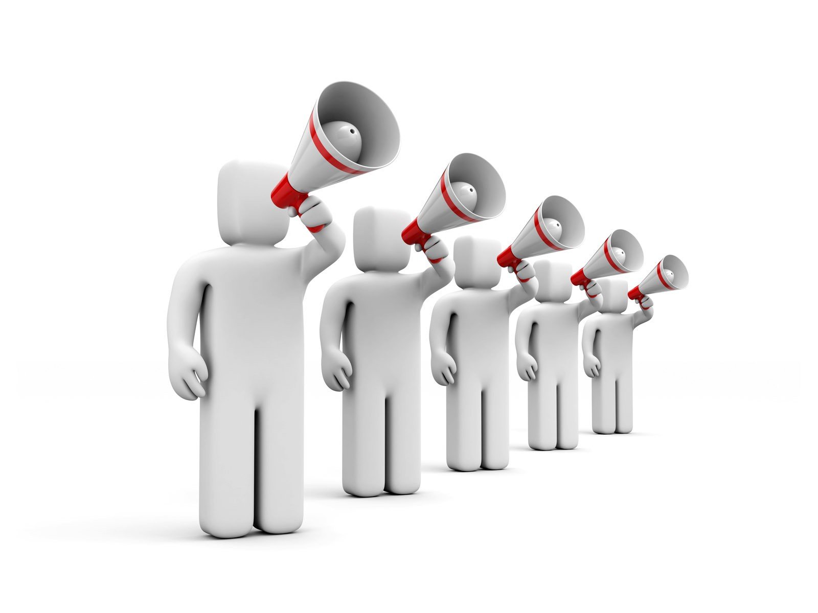 Blondine auf weißem Hintergrund spricht in einem Mundstück