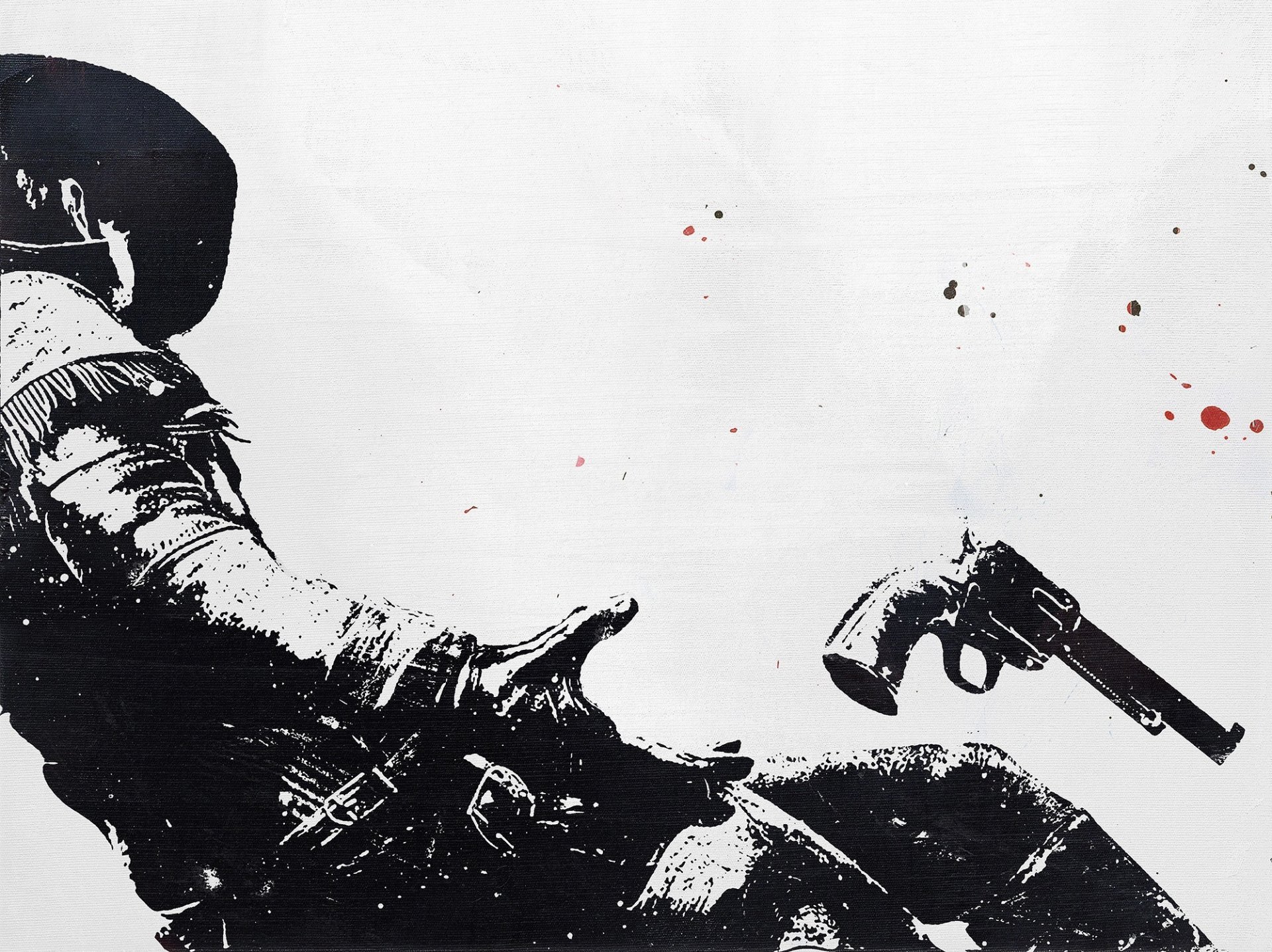 Schwarz-Weiß-Zeichnung Cowboy mit Revolver