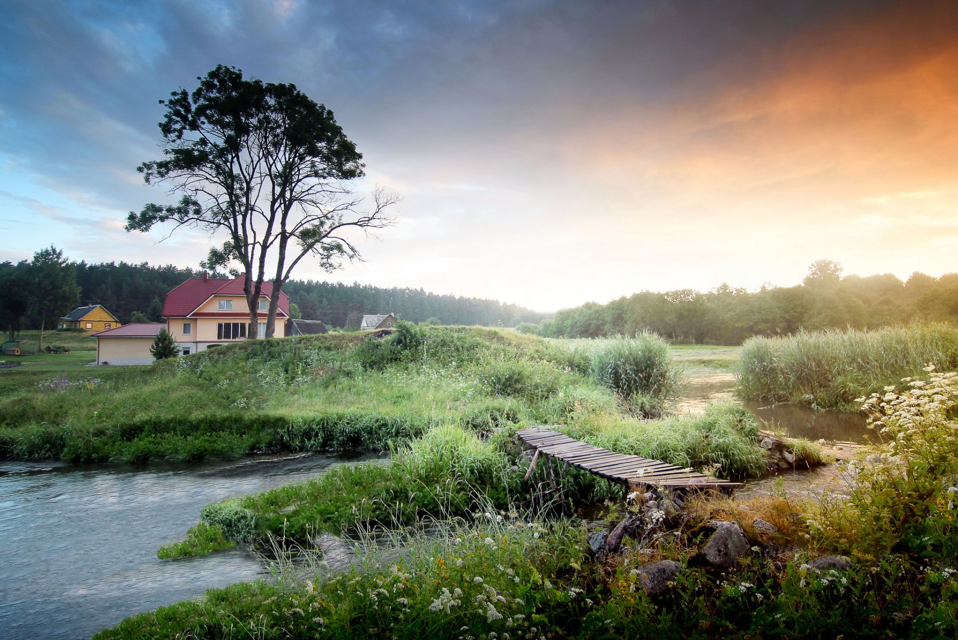 Morgen bei Sonnenaufgang im Dorf