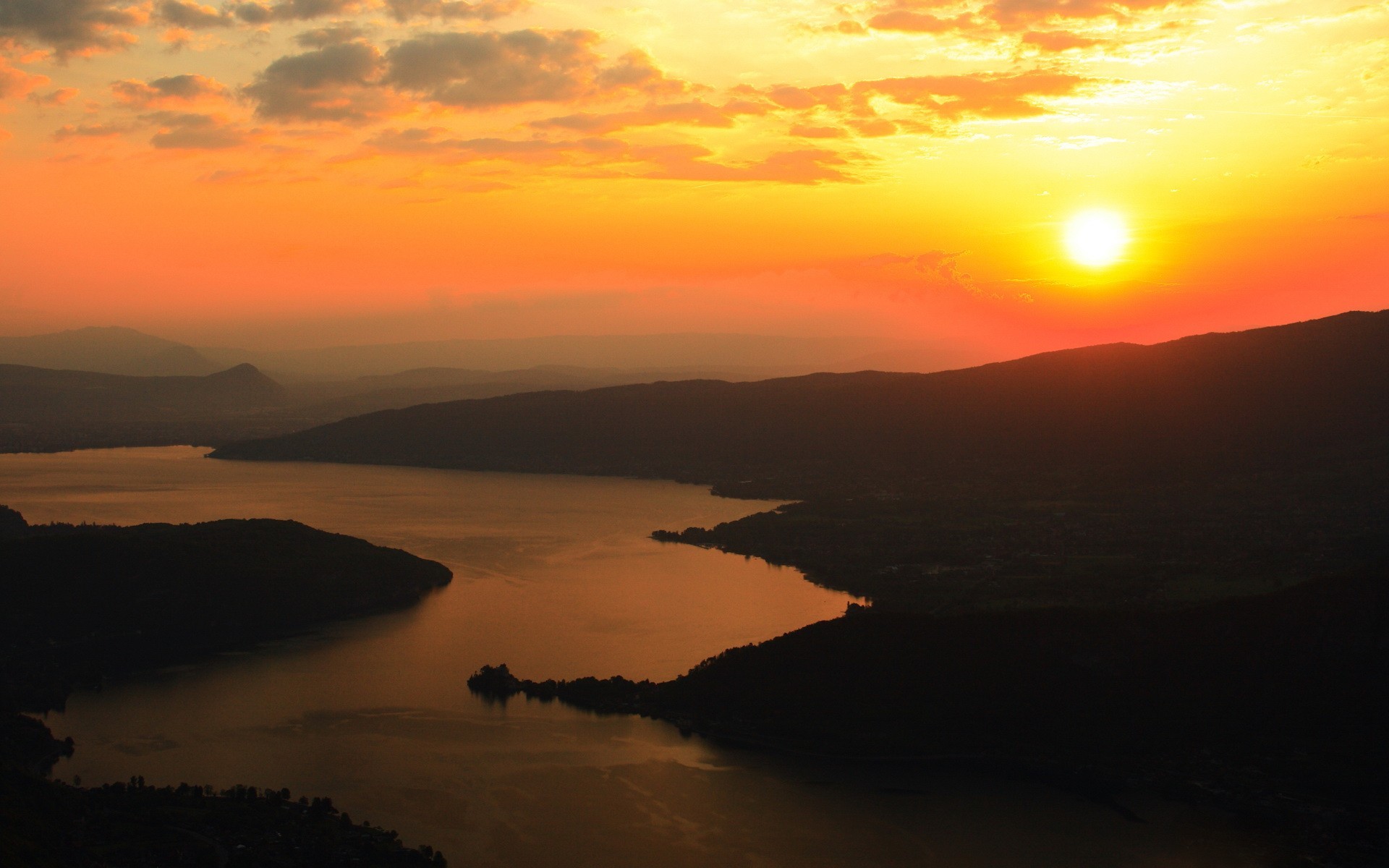See vor dem Hintergrund der untergehenden Sonne am Ende des Tages