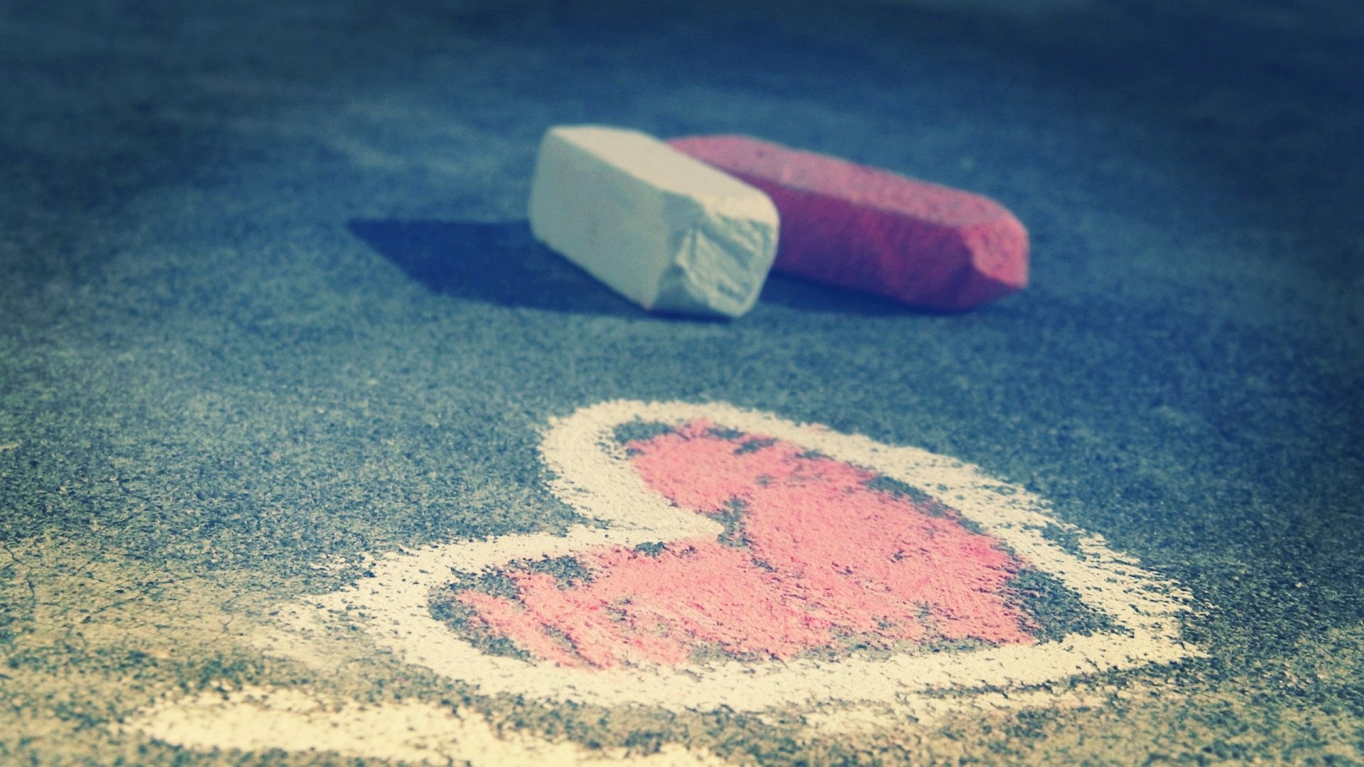 Zeichnung eines Herzens mit Kreide auf Asphalt