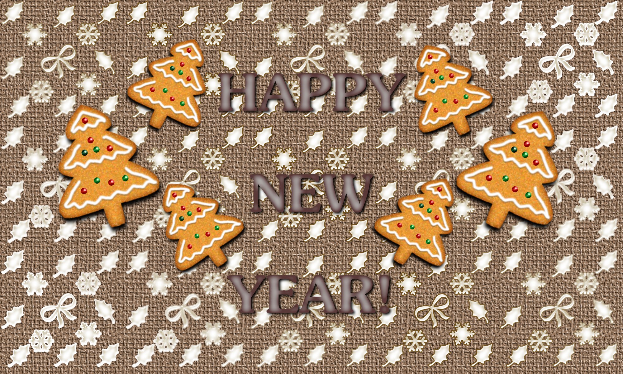 Neujahrsbild mit Keksen in Form von Weihnachtsbäumen