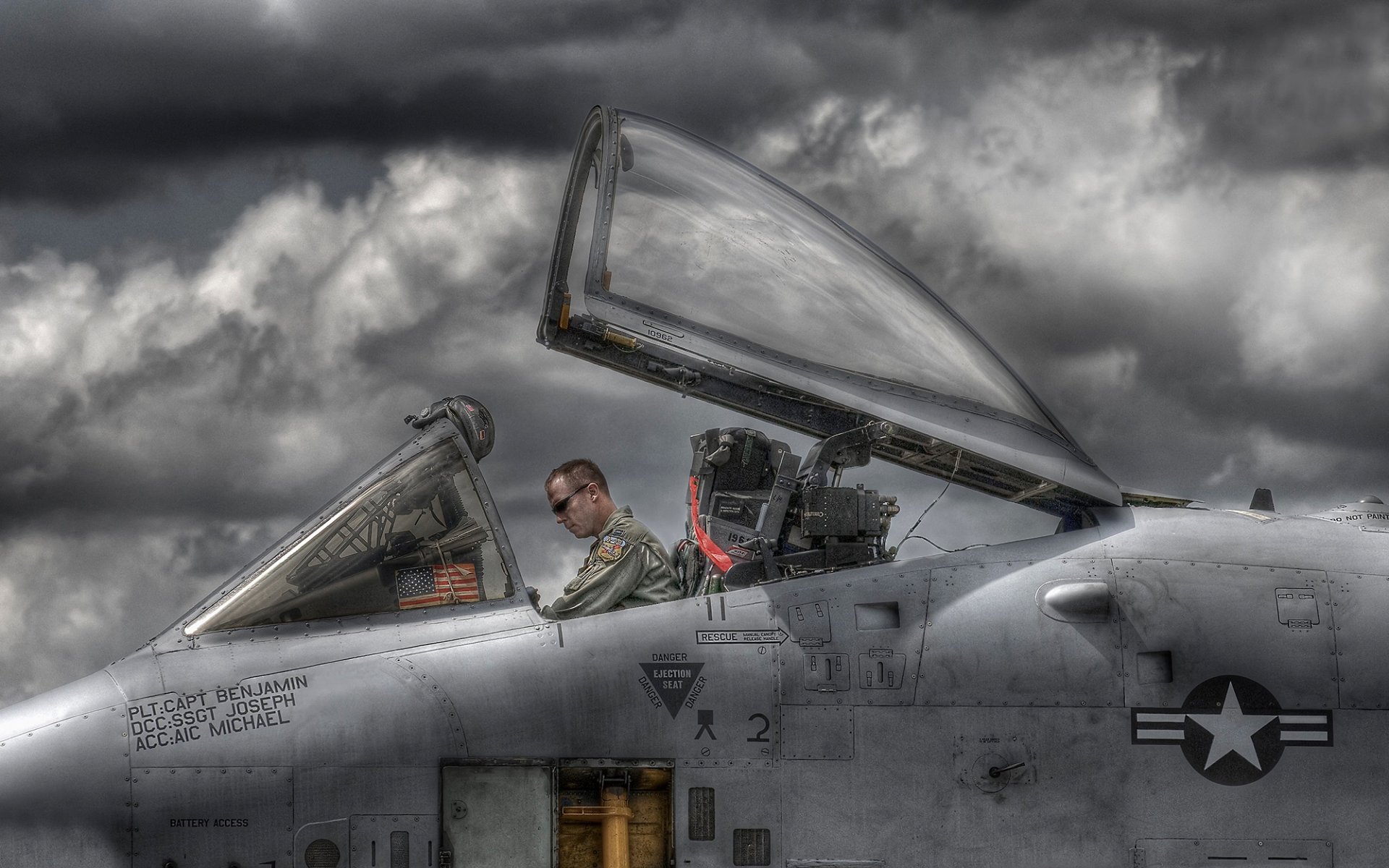Der Pilot fliegt, ohne die Kabine zu schließen, steil
