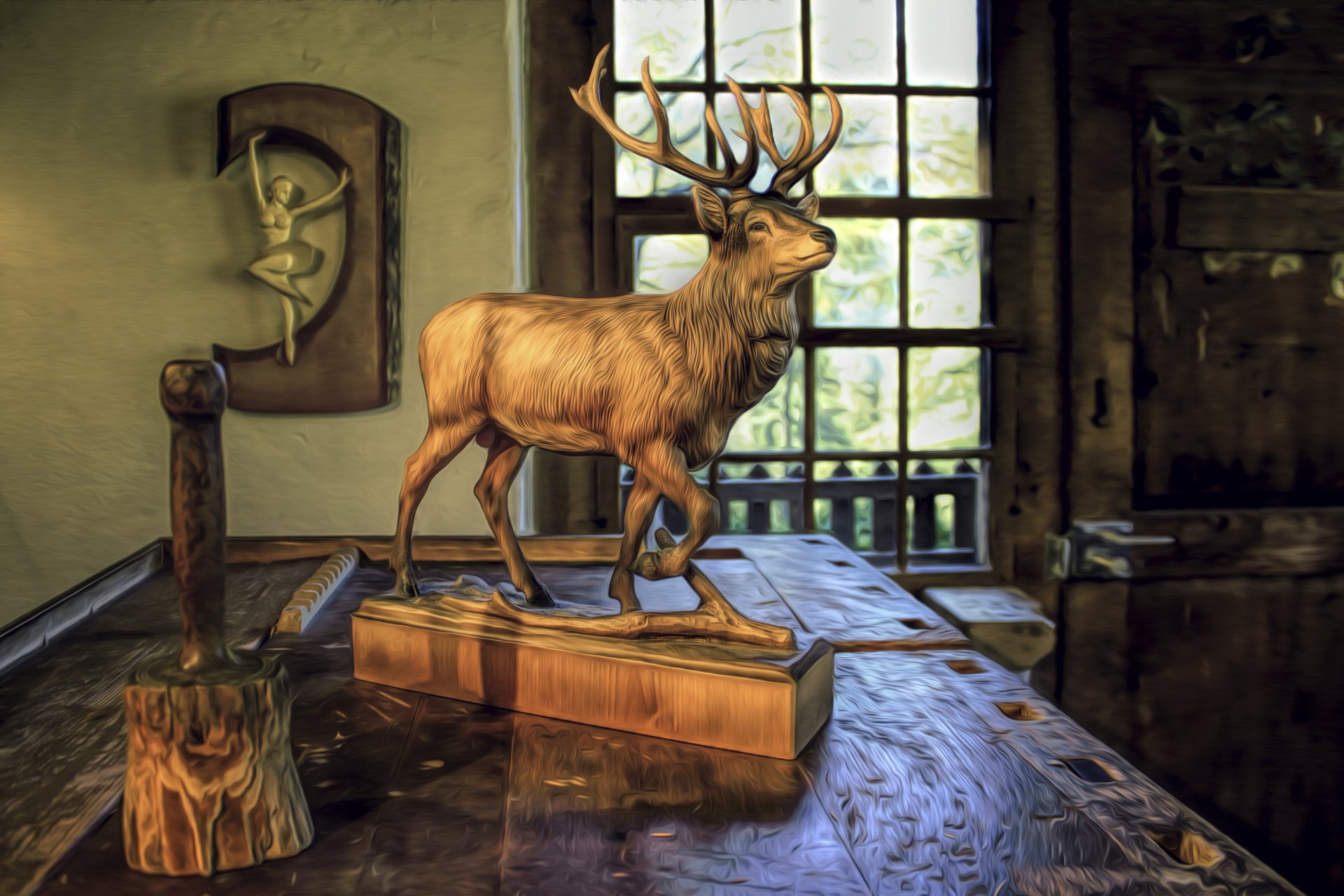 Hölzerne geschnitzte hirschfigur