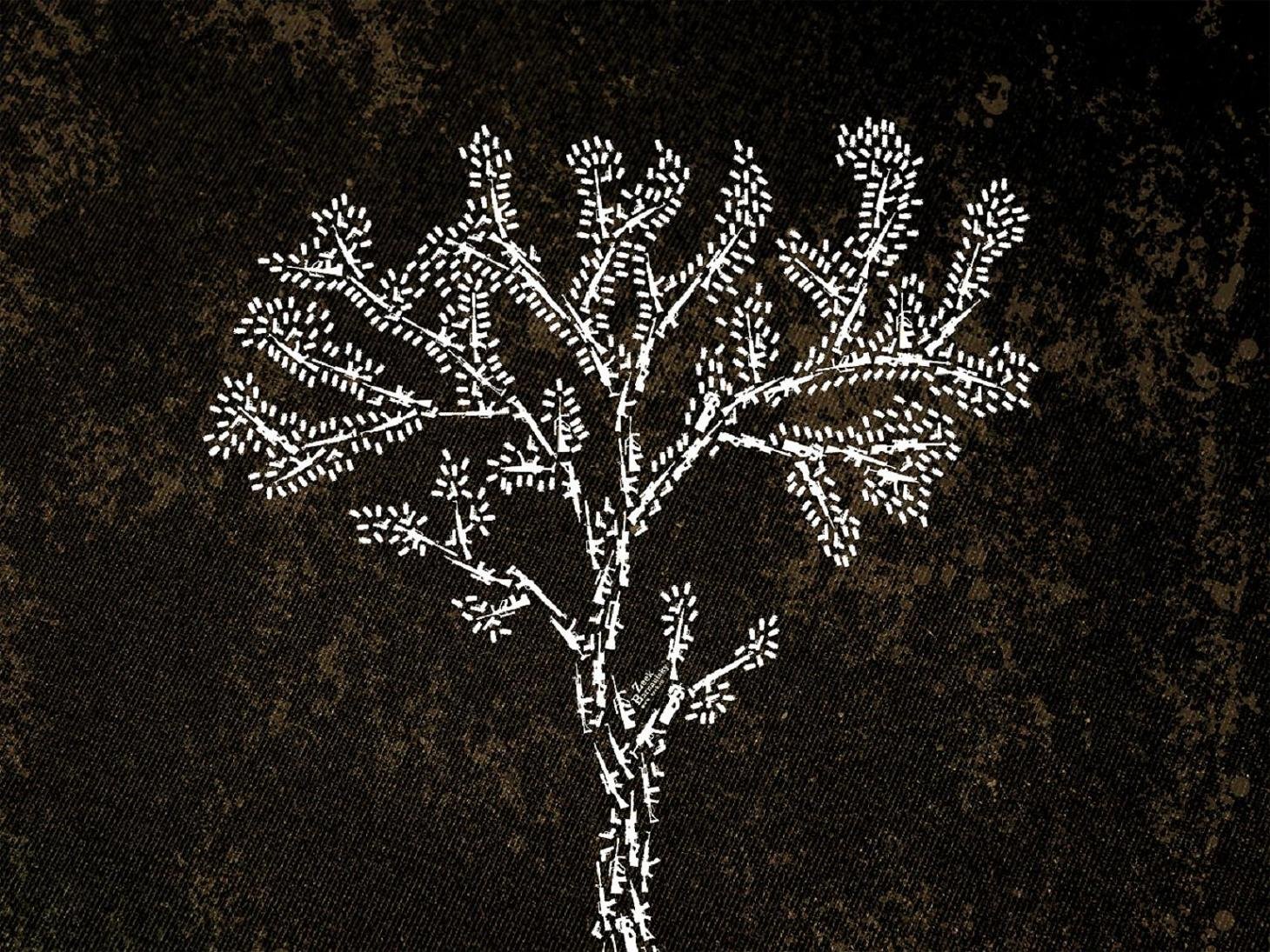 Silhouette eines Baumes, weiß auf schwarz