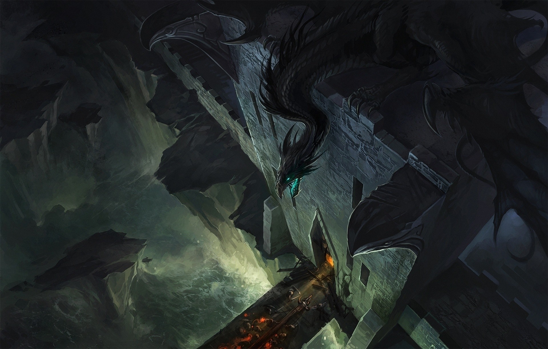 Bild eines Dorfes, in dem Magier und Monster kämpfen