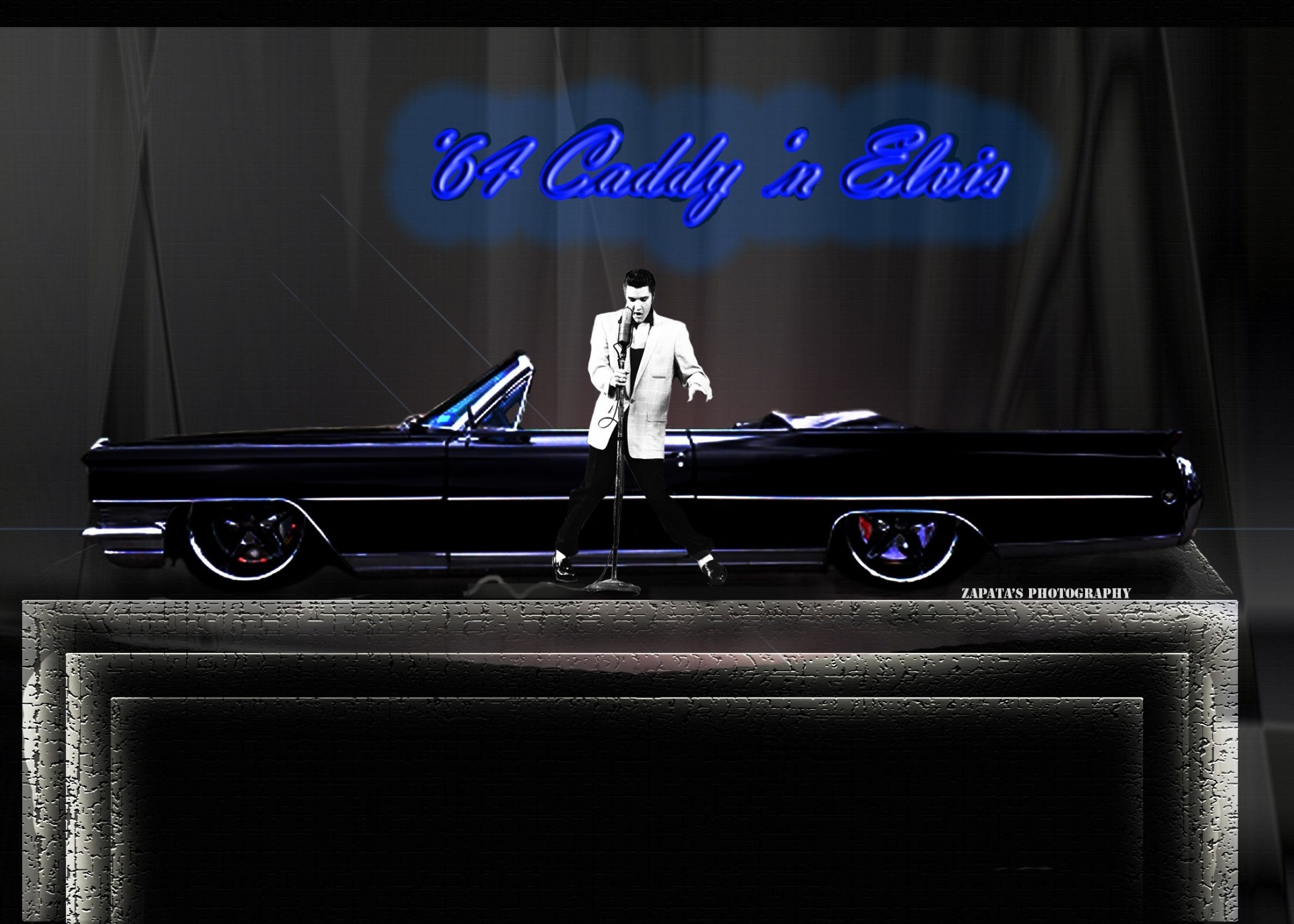 Elvis Presley neben einem schwarzen Retro-Auto