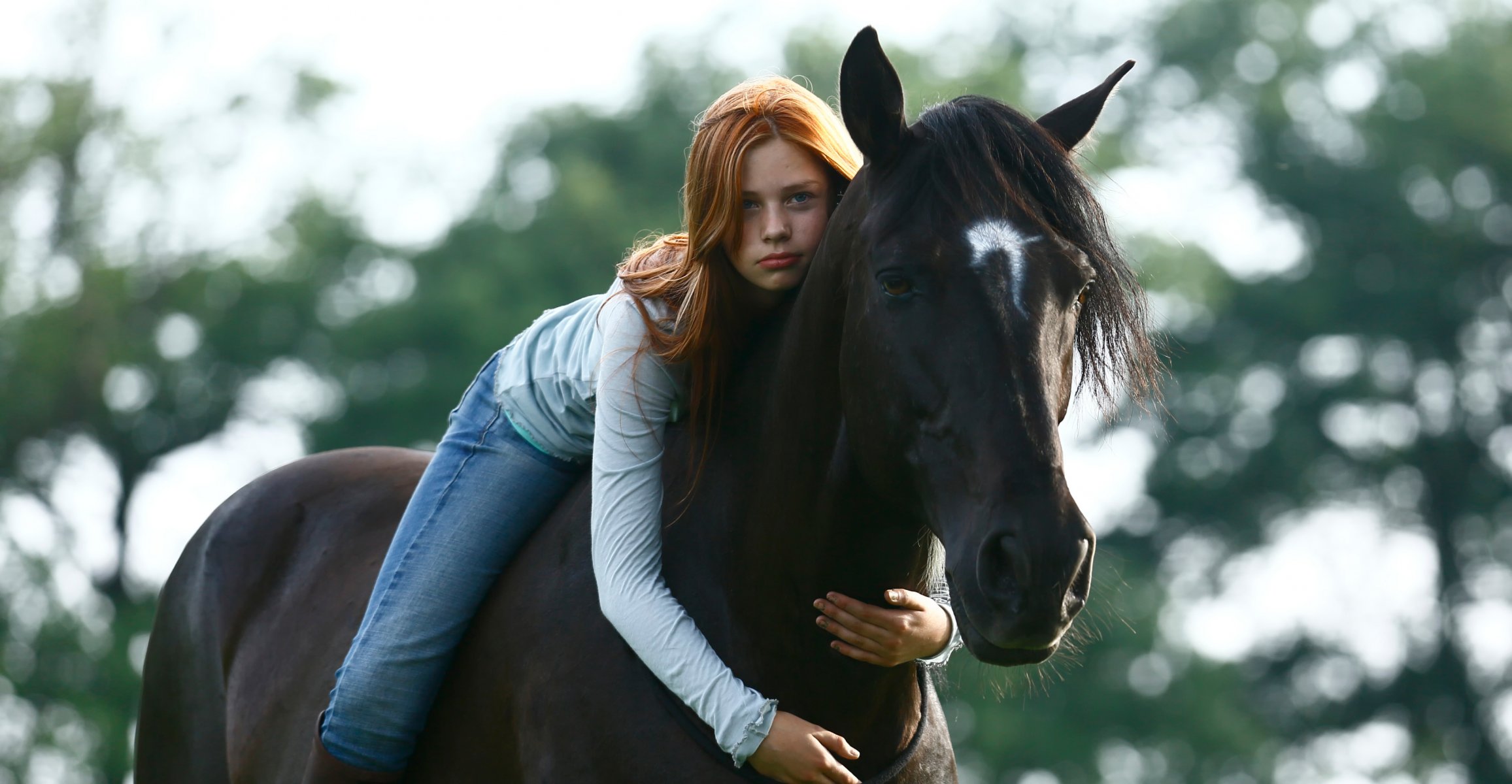Lichtstrahlen durch Gewitterwolken erhellen den Gärtner auf einem eisernen Pferd