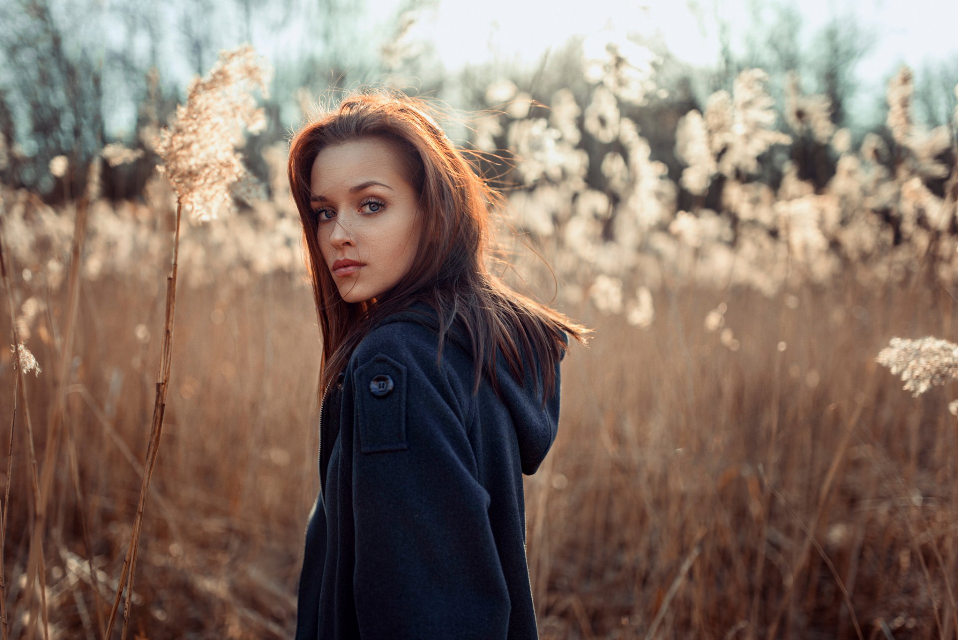Das Mädchen ist eine Jägerin in einem Mantel mit einem Speer