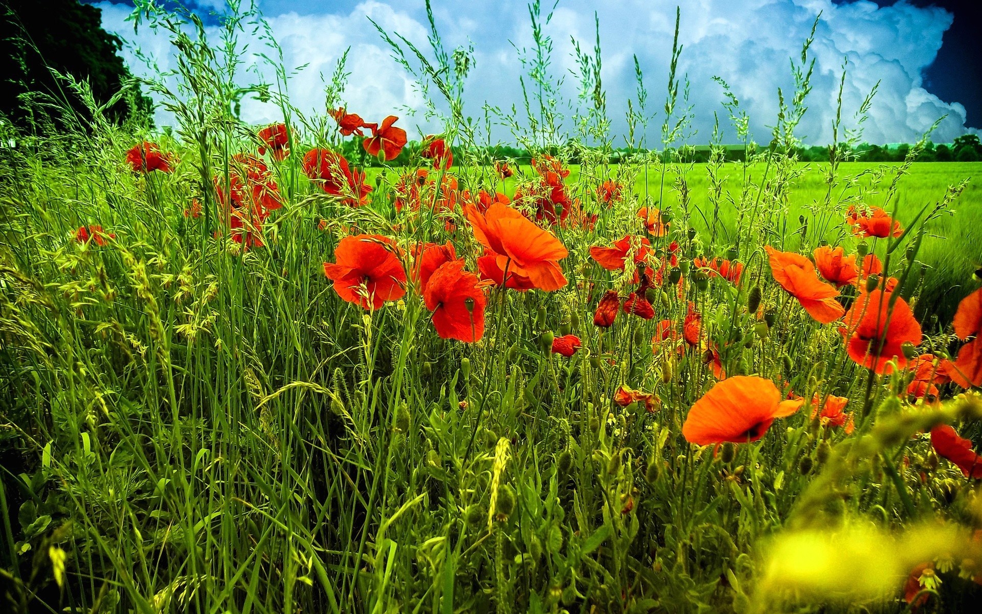 Ein einsamer Baum in einem gelben Feld unter den Wolken