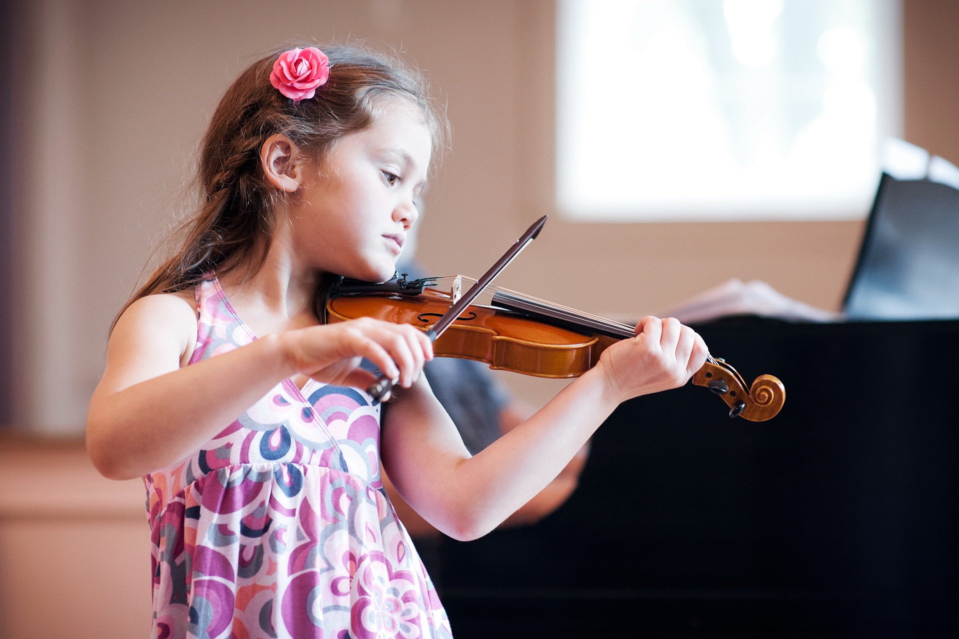 Das Mädchen, das ihre Haare auflöste, spielte sanft Geige