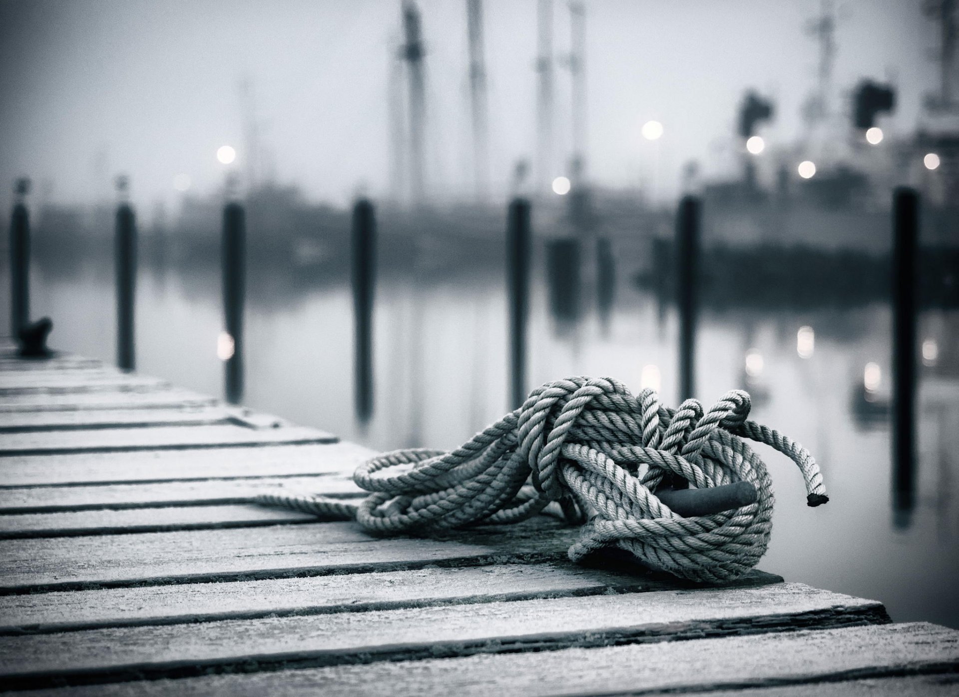 Wäscheklammer am Seil vor dem Hintergrund düsterer Wolken