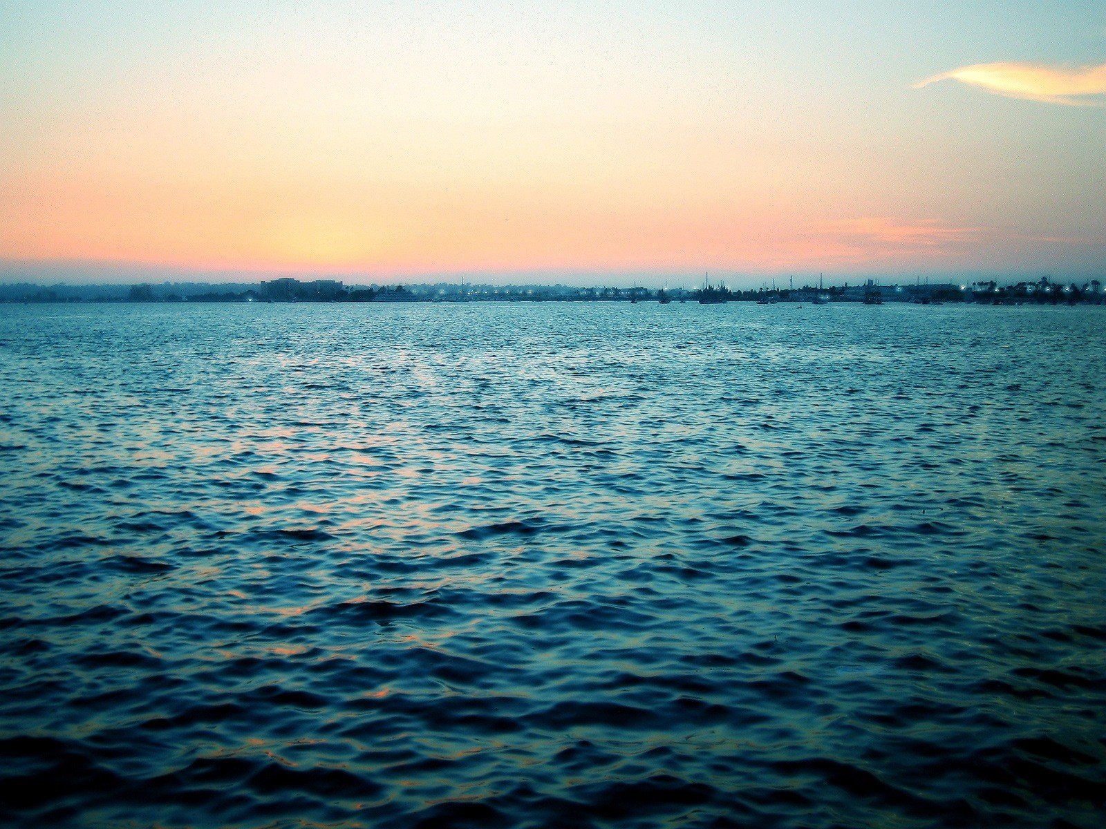 Das grenzenlose blaue Meer bei Sonnenuntergang