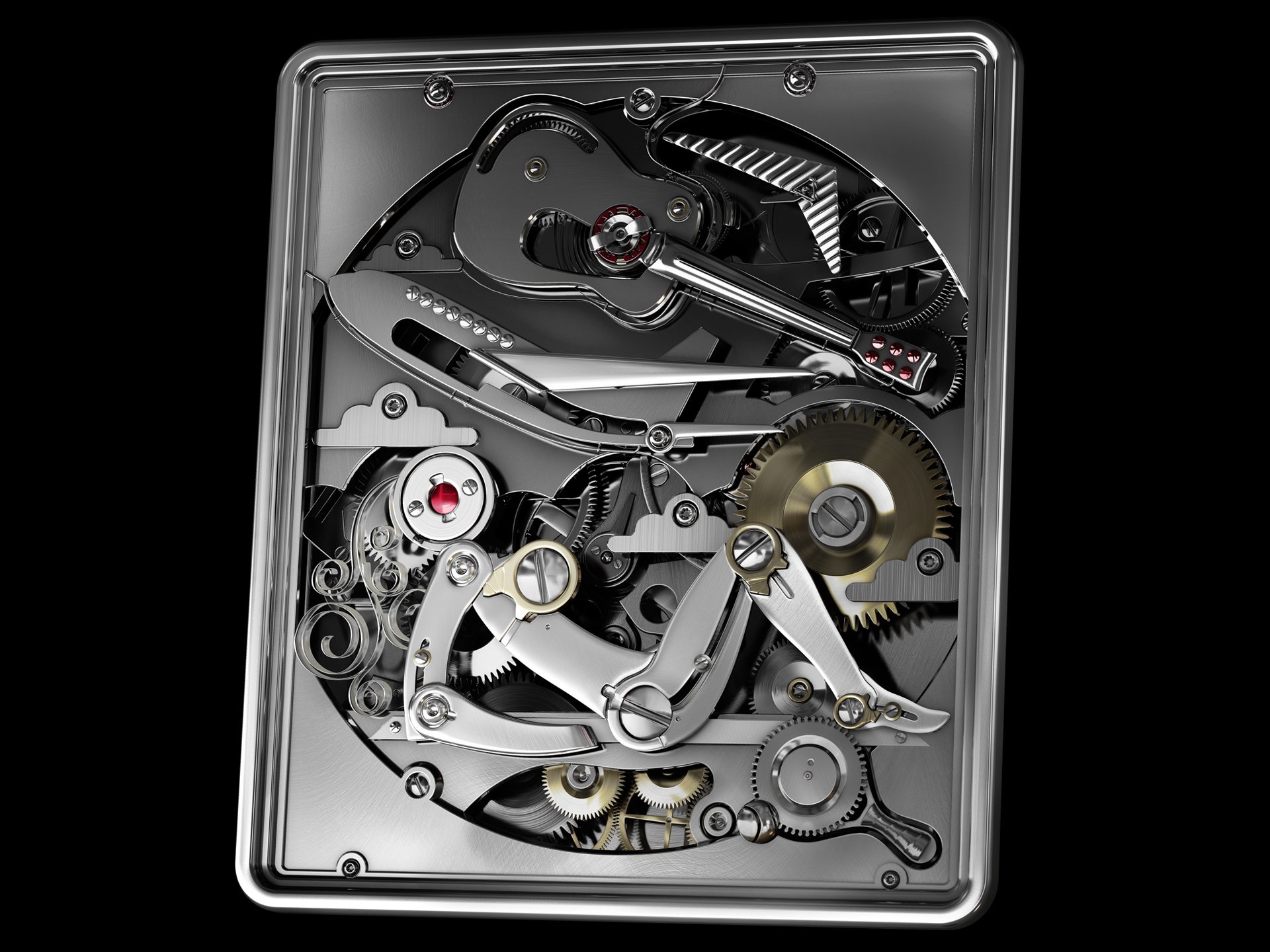 Offener Mechanismus der Armbanduhr in Form eines Puzzles