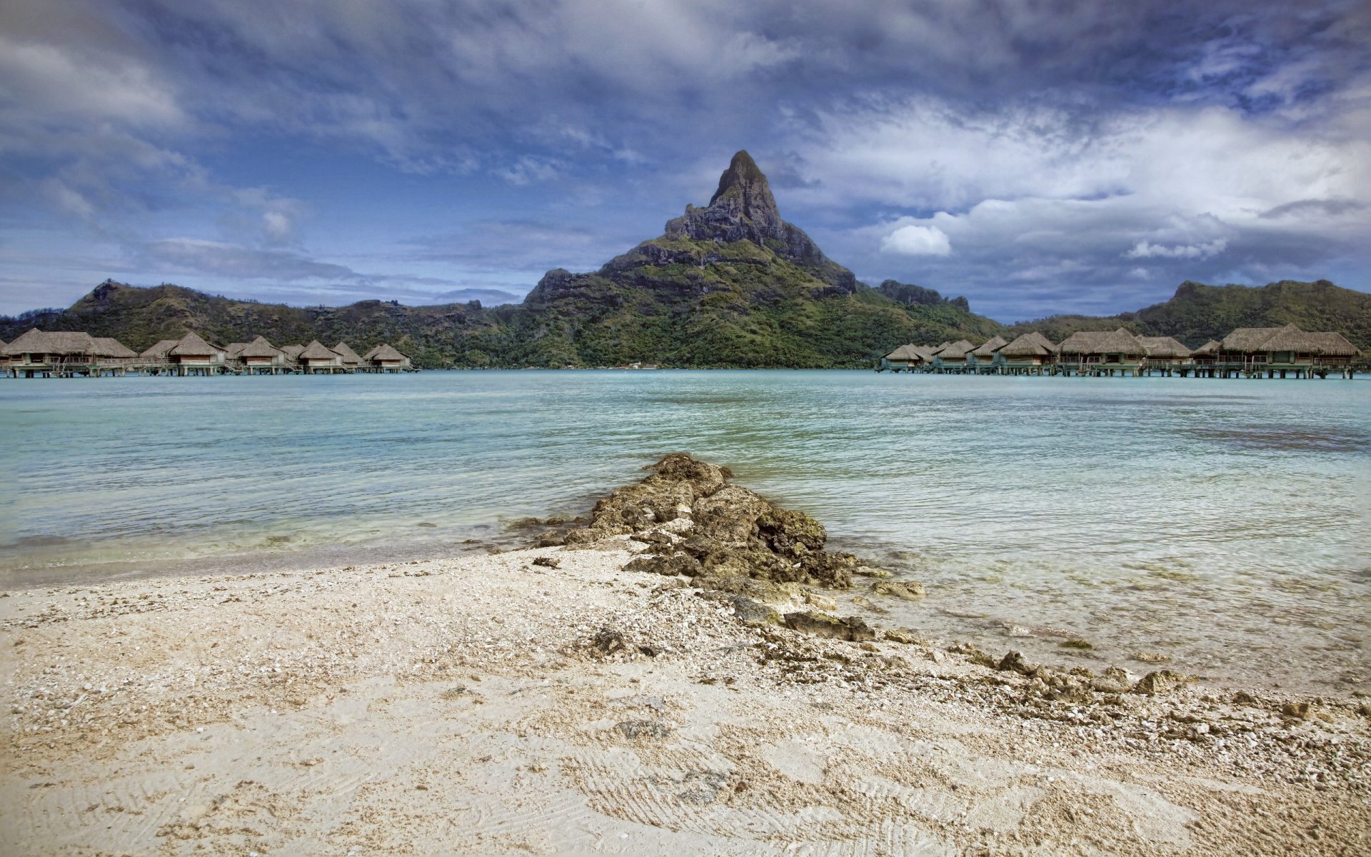 Ein See an dessen Ufer Berge und ein Nadelwald sind