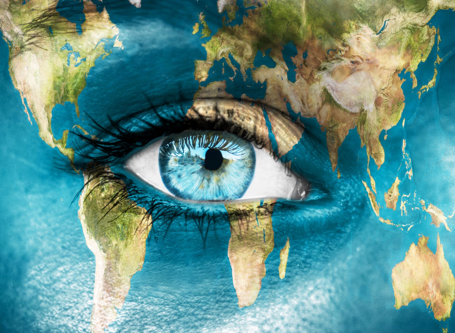 Nahaufnahme des Auges mit Make-up im Körperkunststil