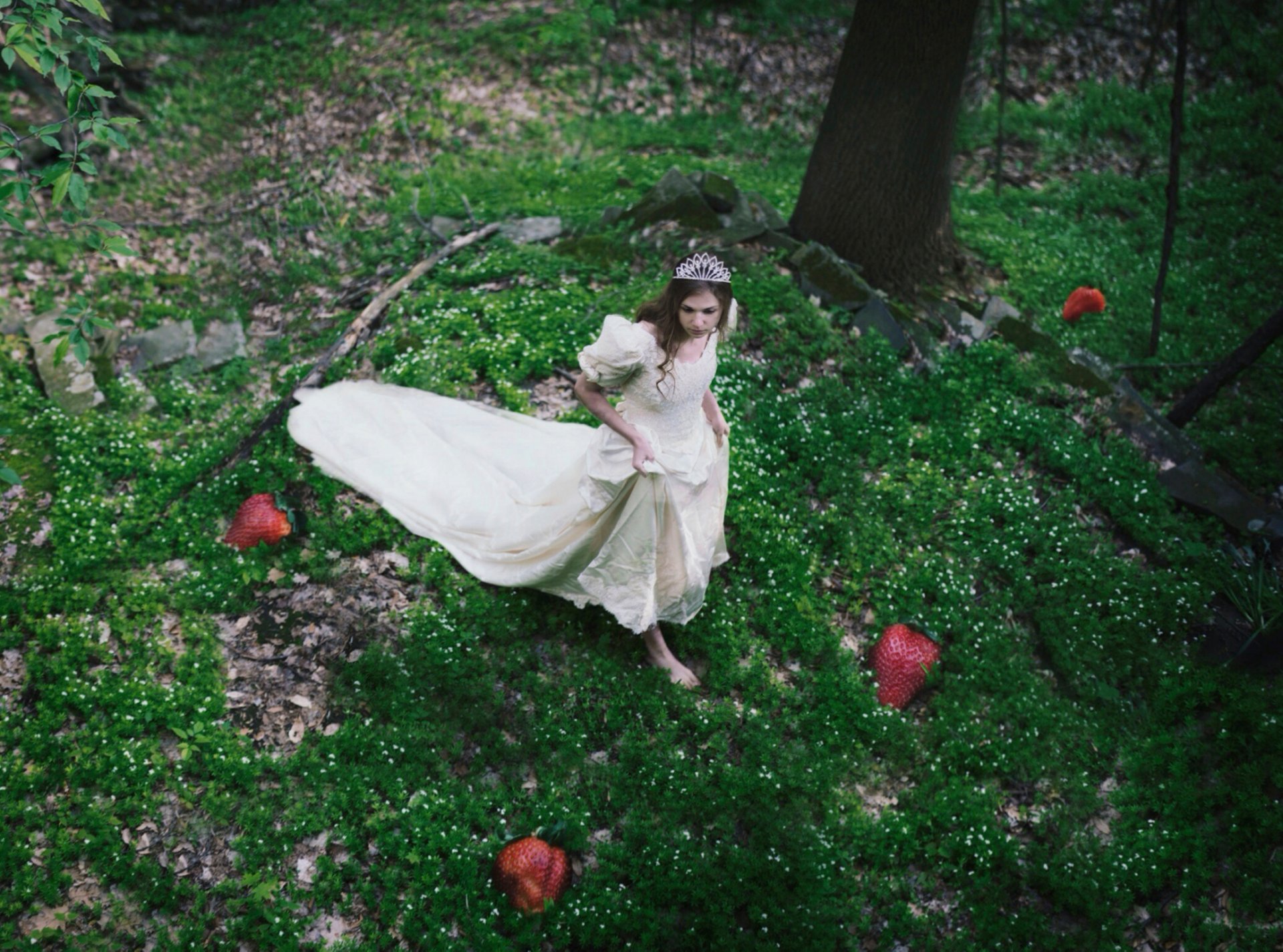 Mann liegt an Bäumen auf Steinen im Wald gebunden