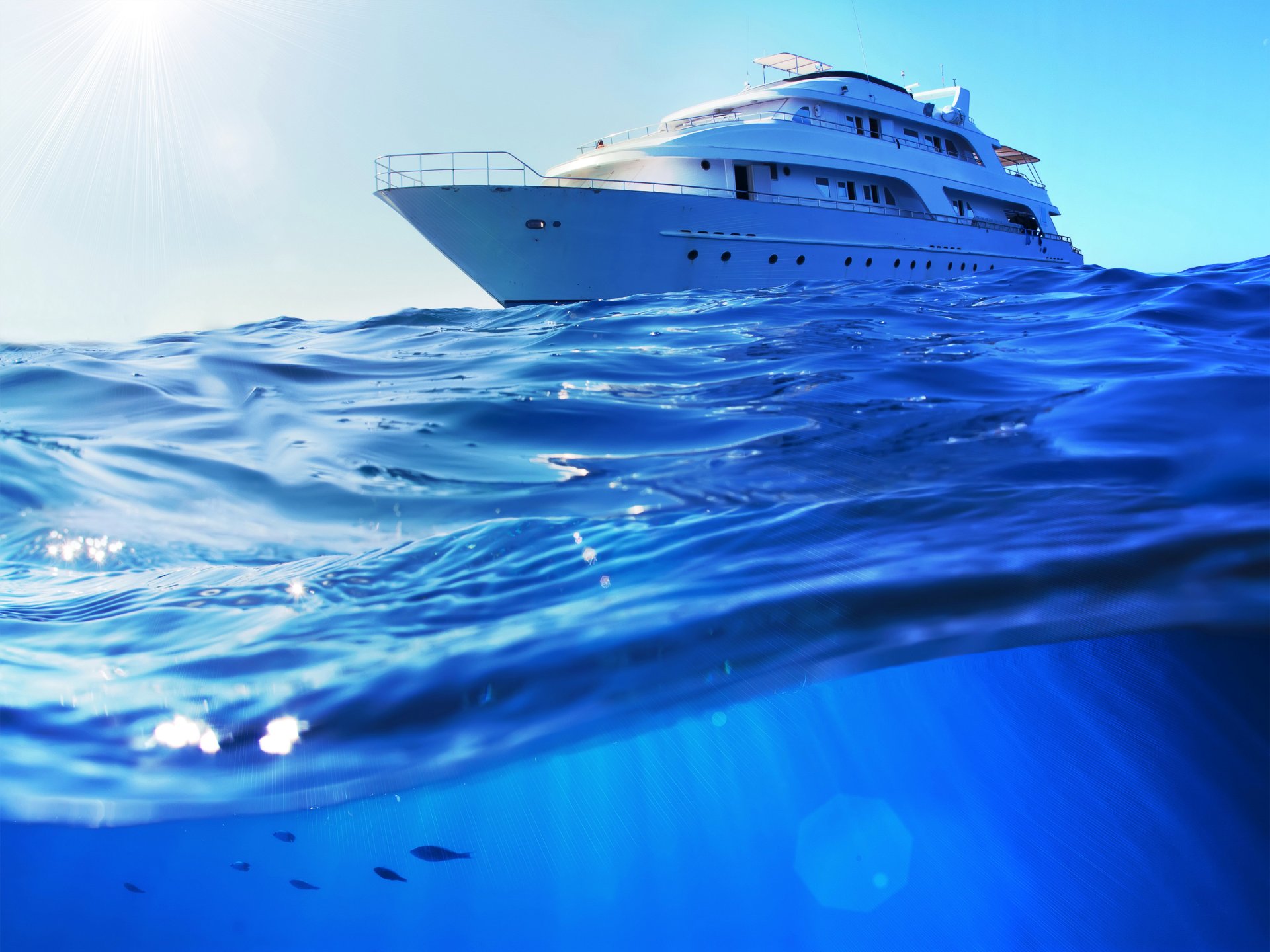 Yacht im Meer vor dem Hintergrund der Brücke und der Lichter in der Nacht