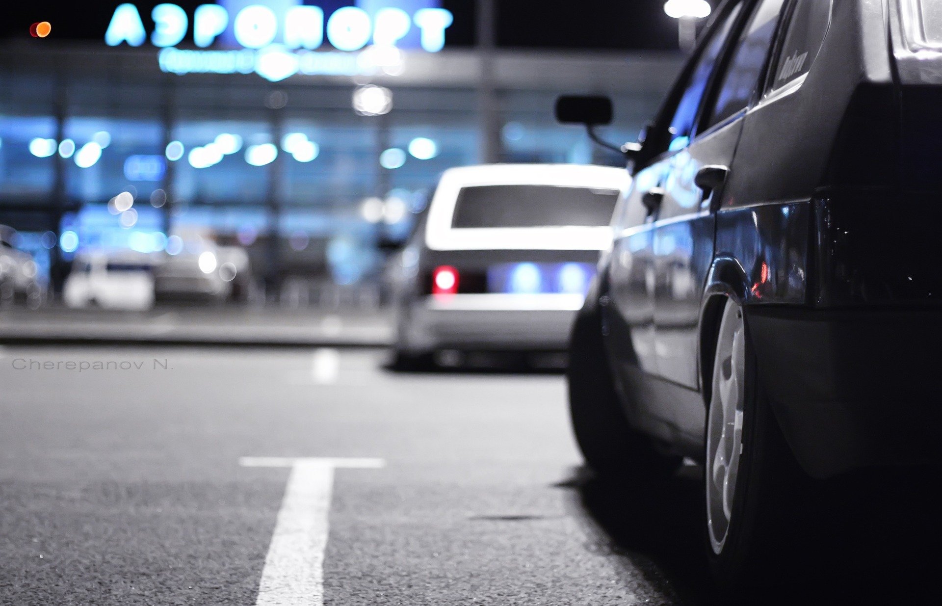 Klare Vasen stehen auf dem Flughafenparkplatz