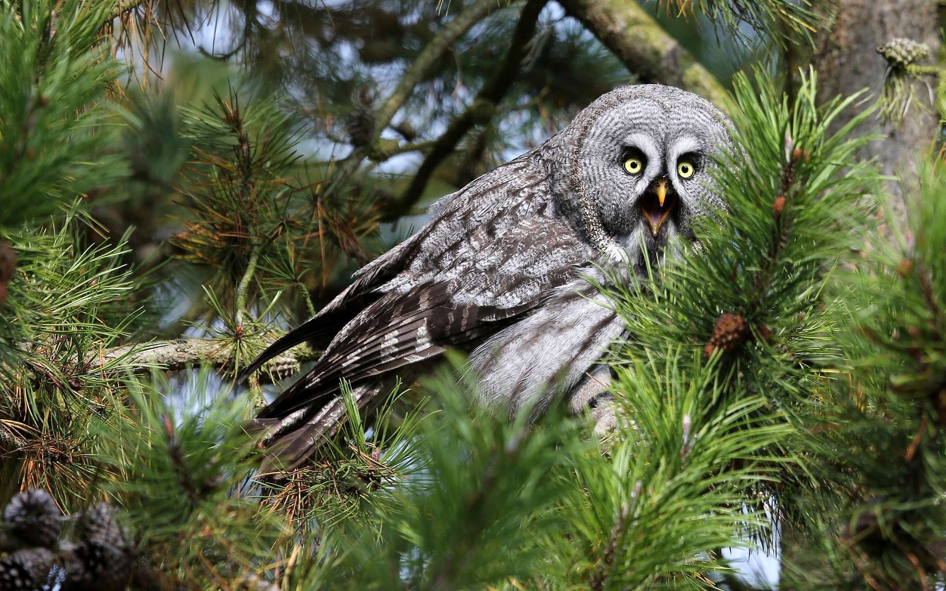Winterlandschaft mit Vogel auf einem Baumstumpf