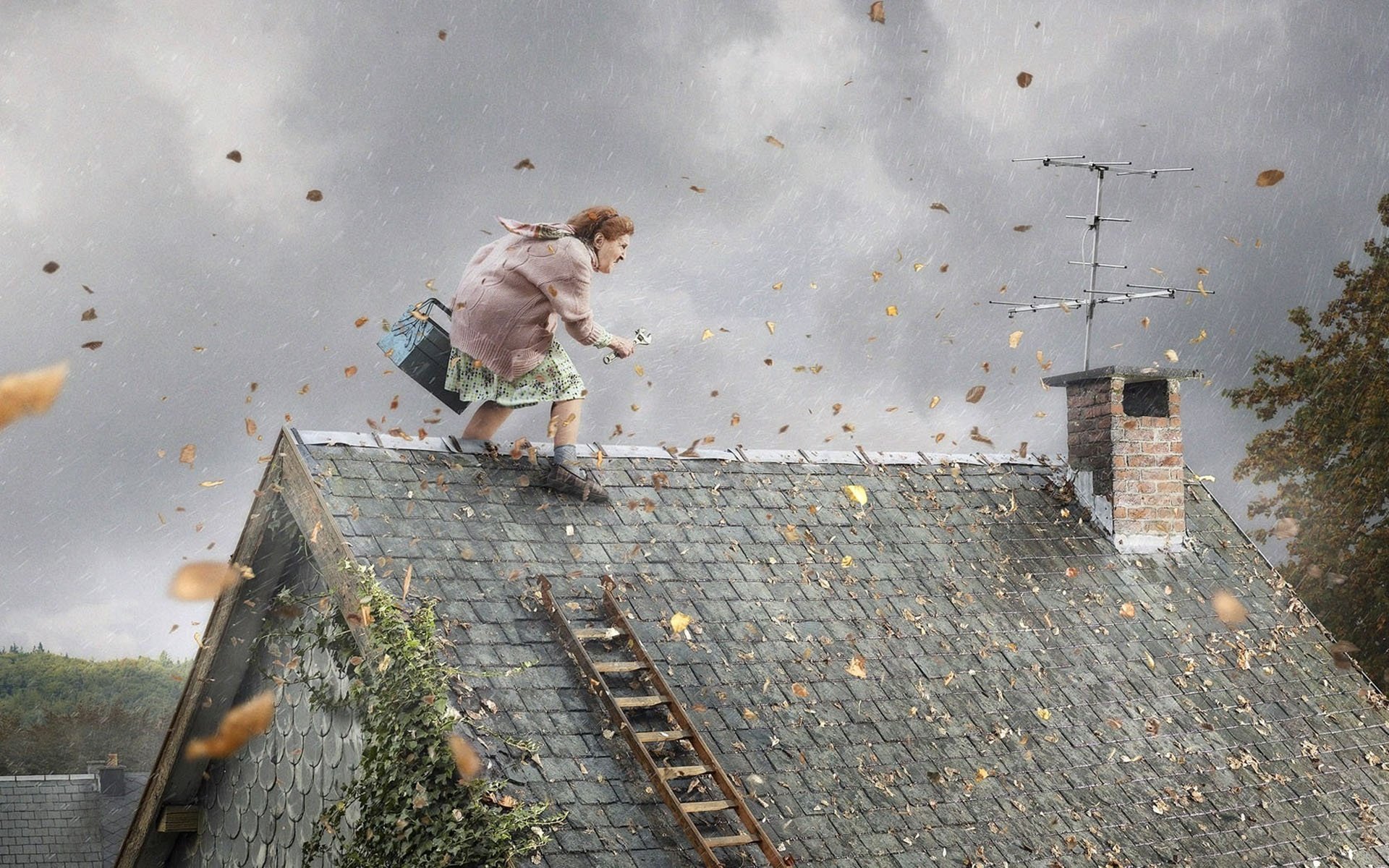 Meine Großmutter kam herein, um das Dach zu reparieren und schlechtes Wetter