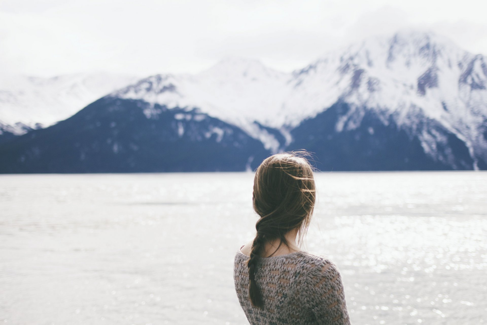 Mädchen im T-Shirt auf dem Hintergrund der Bäume