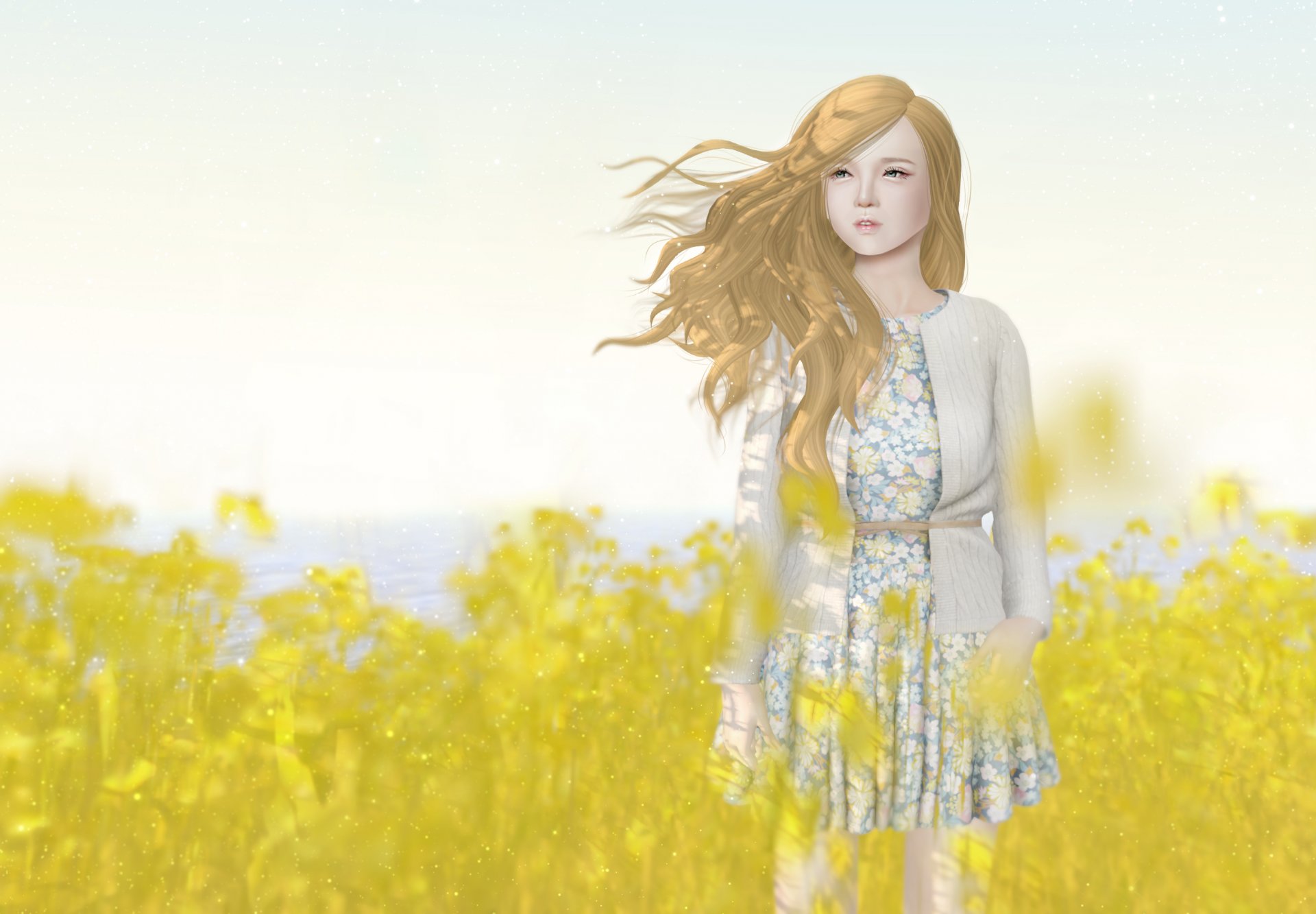 Zeichnung eines Mädchens auf einer Wiese im hohen Gras