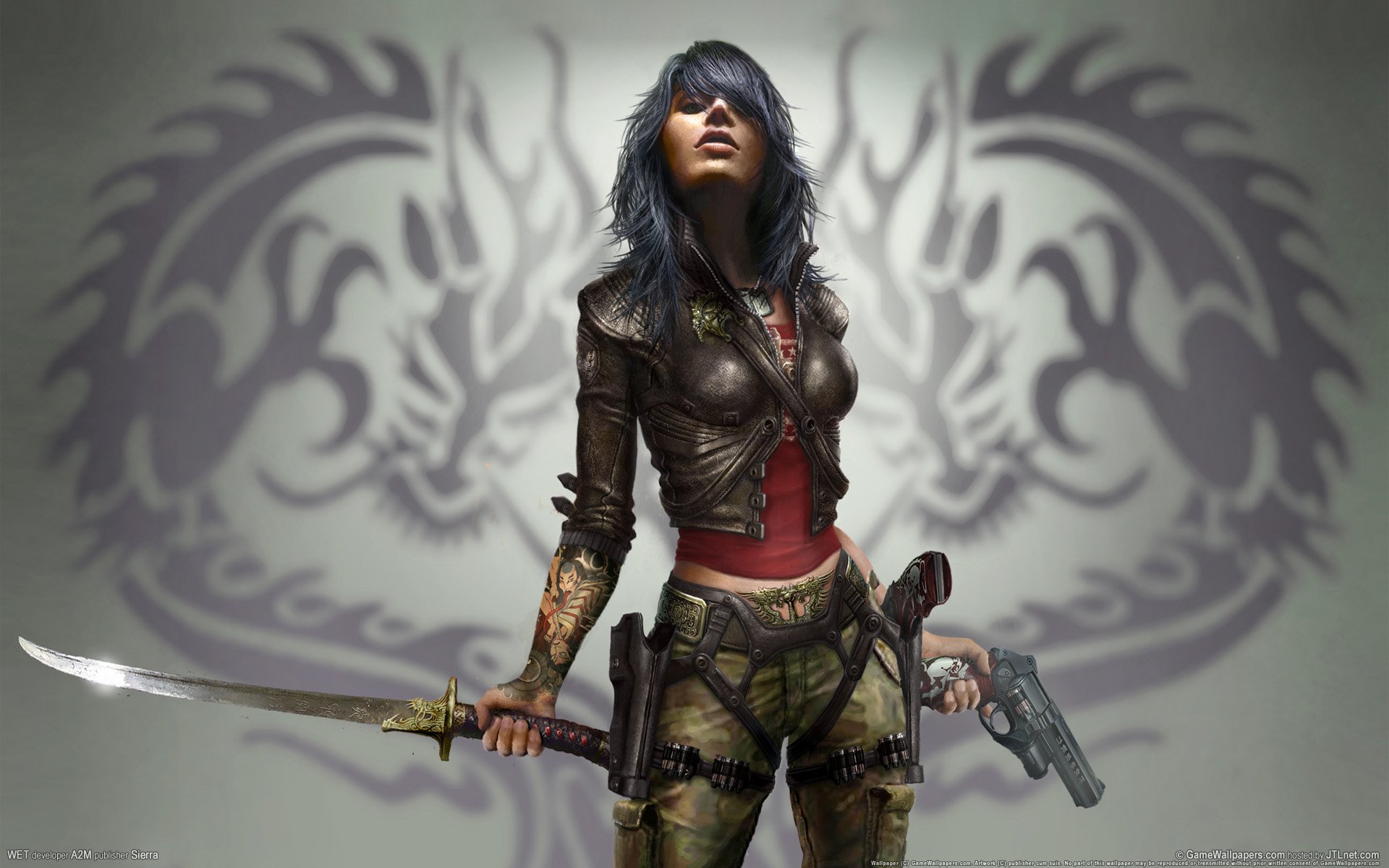 Kunst des Kampfmädchens, das mit einer Pistole schießt