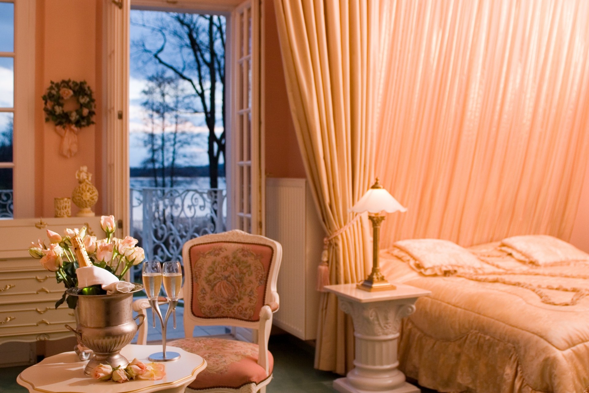 Schlafzimmer in Pfirsichfarben Stil Klassizismus