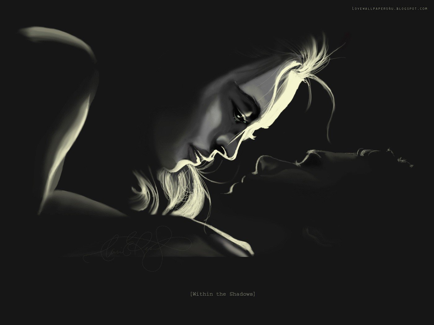 Mädchen beugt sich über einen Kerl im Dunkeln