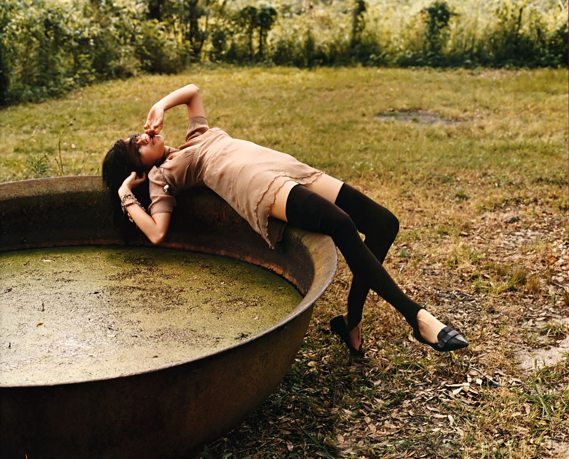 Adrina Lima in Dessous schaut in die Ferne