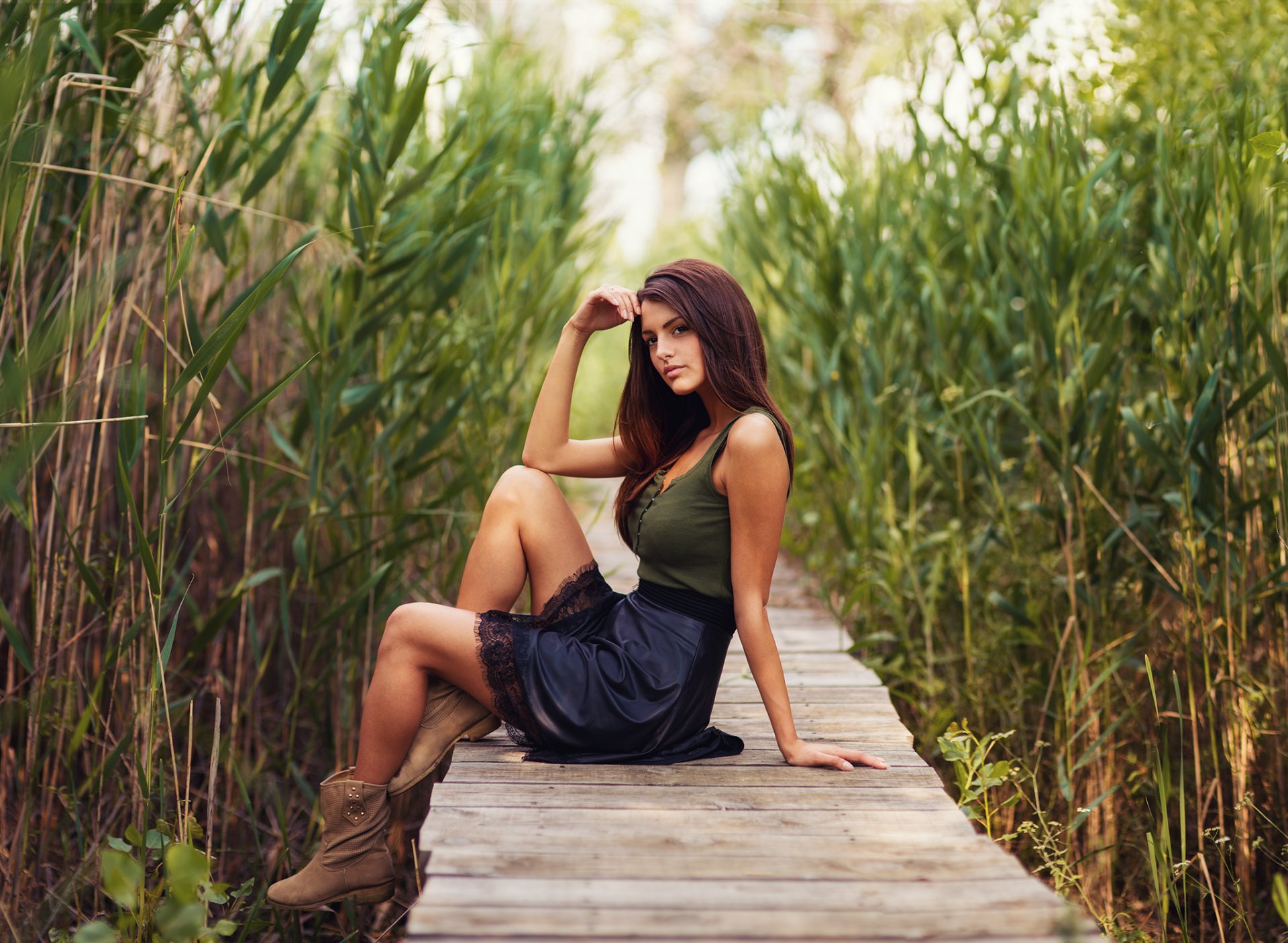 Fotoshooting am See unter Schilf