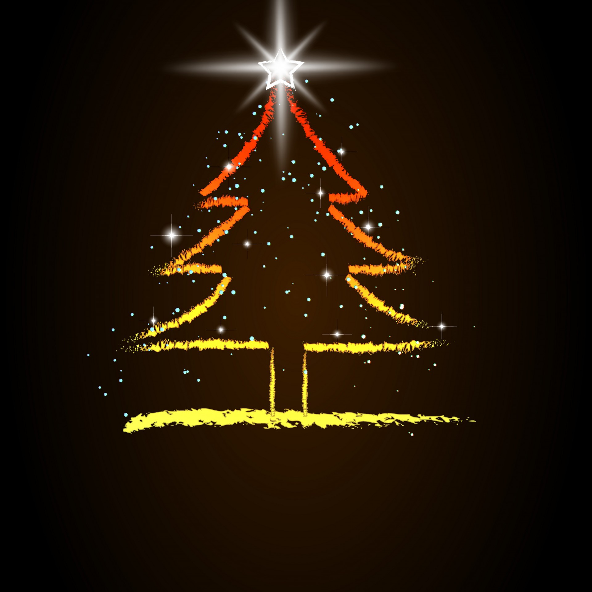 Ein pragmatisch geschmückter Weihnachtsbaum und ein schön geschmückter Kamin