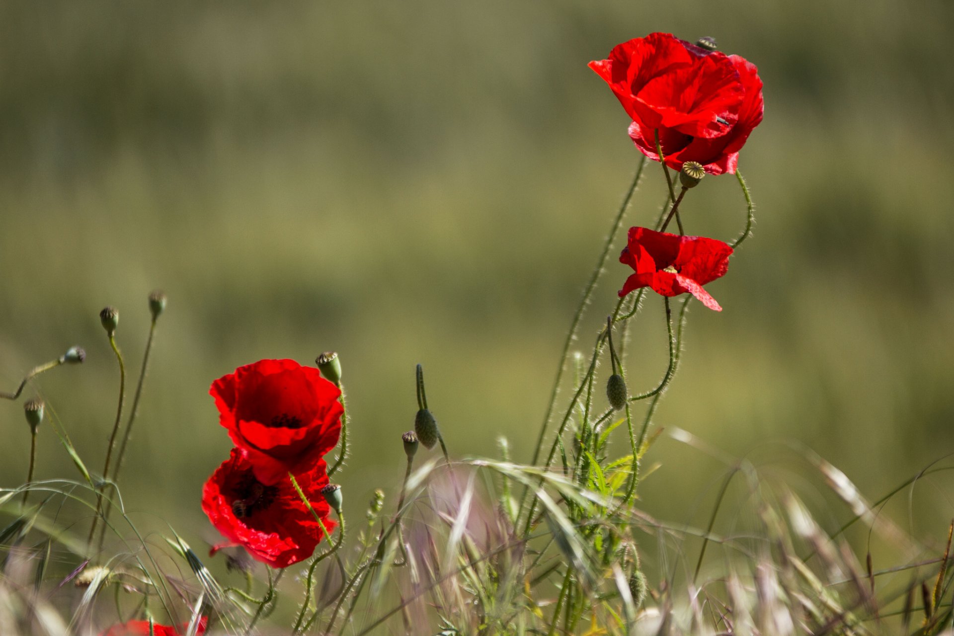 Die unreifen grünen Ähren sind vom Wind gebogen