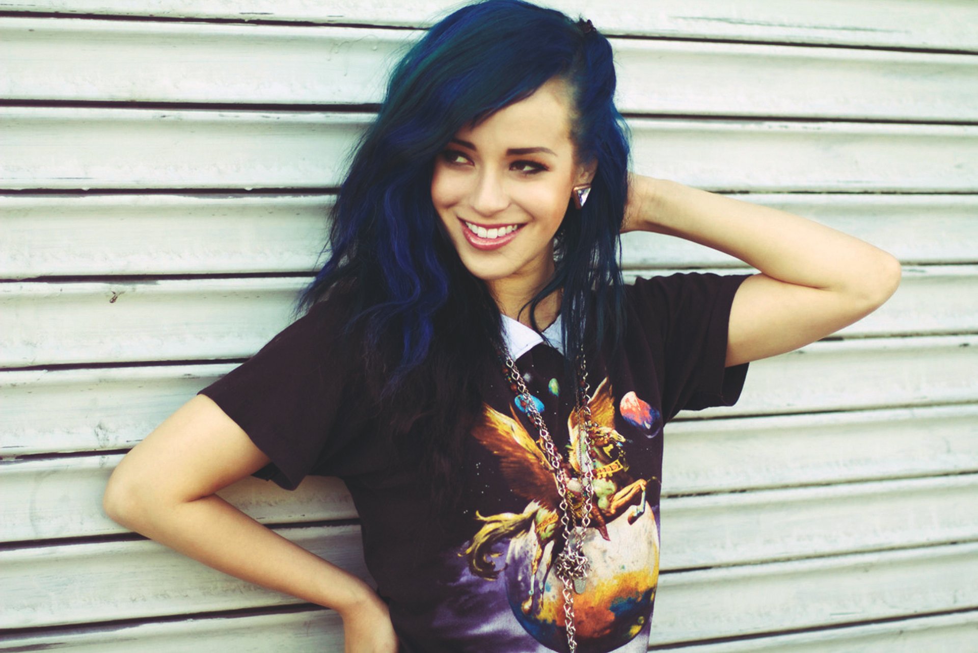 Helle brünette posiert vor dem hintergrund der garagenflaschen